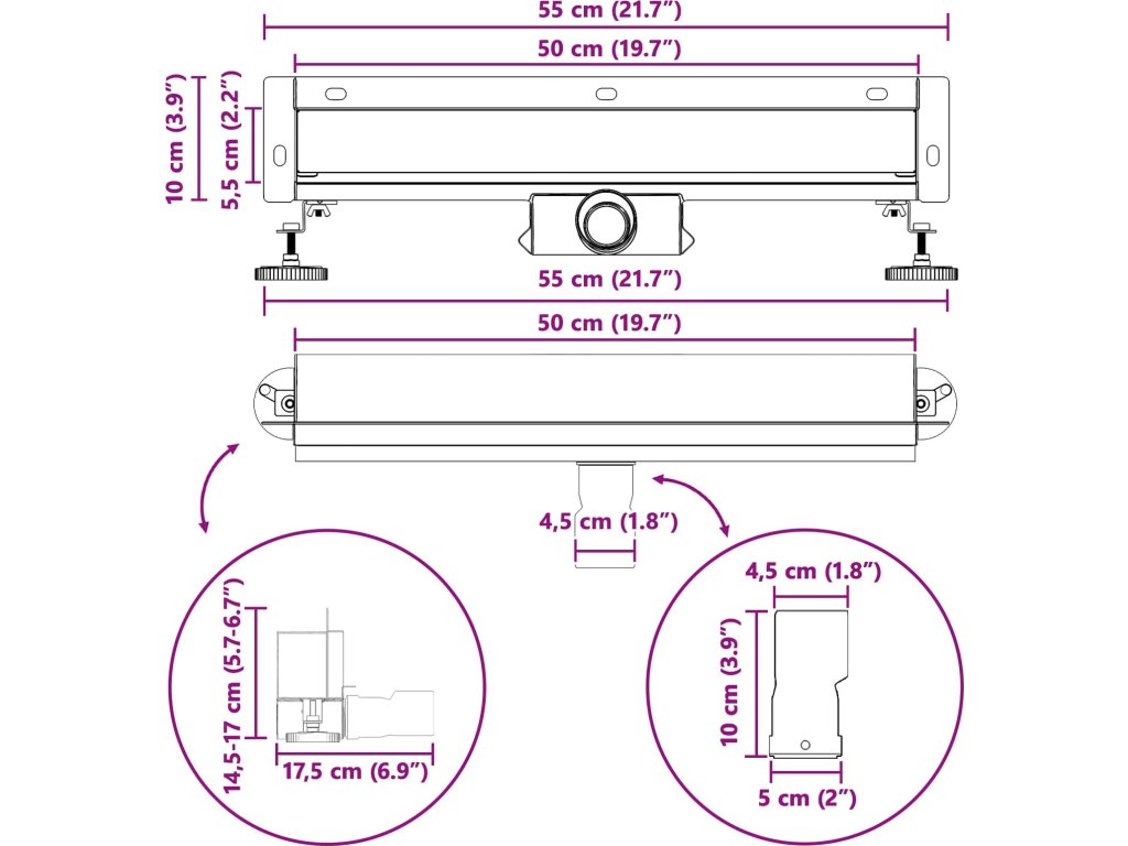 - Univerzální doporučené použití Vhodný pro různé koupelnové styly, tenhle odtok se snadno přizpůsobí různým designům a potřebám. Jeho univerzálnost ho dělá skvělým nejen do domácností, ale i do komerčních prostor, kde se spojuje efektivita se stylem. Ať jde o novostavbu nebo renovaci, přidává hodnotu a výkon.
