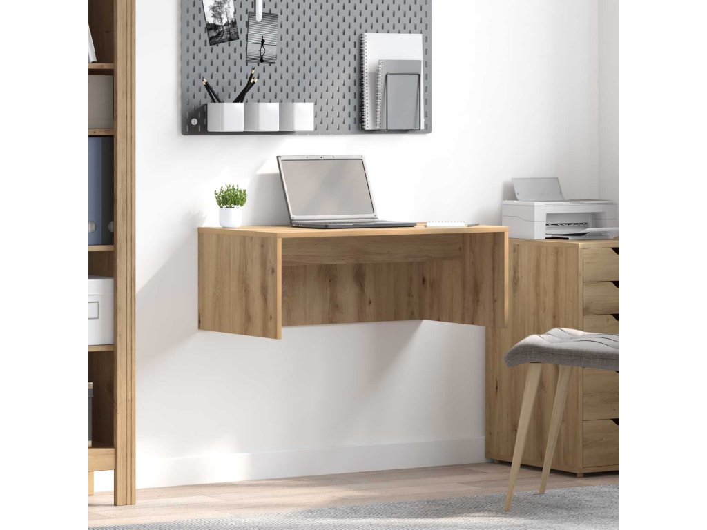 Tento nástěnný stůl je ideální pro domácí kanceláře nebo malé prostory, spojuje moderní eleganci s praktickou funkcí. Jeho čisté linie a minimalistický design dělají z něj stylový kousek do každé místnosti, zatímco inženýrský dřevěný povrch nabízí snadno udržovatelný pracovní prostor, který je super pro profíky nebo studenty. Pomáhá udržet podlahu uspořádanou, díky čemuž je prostředí hezky otevřené.