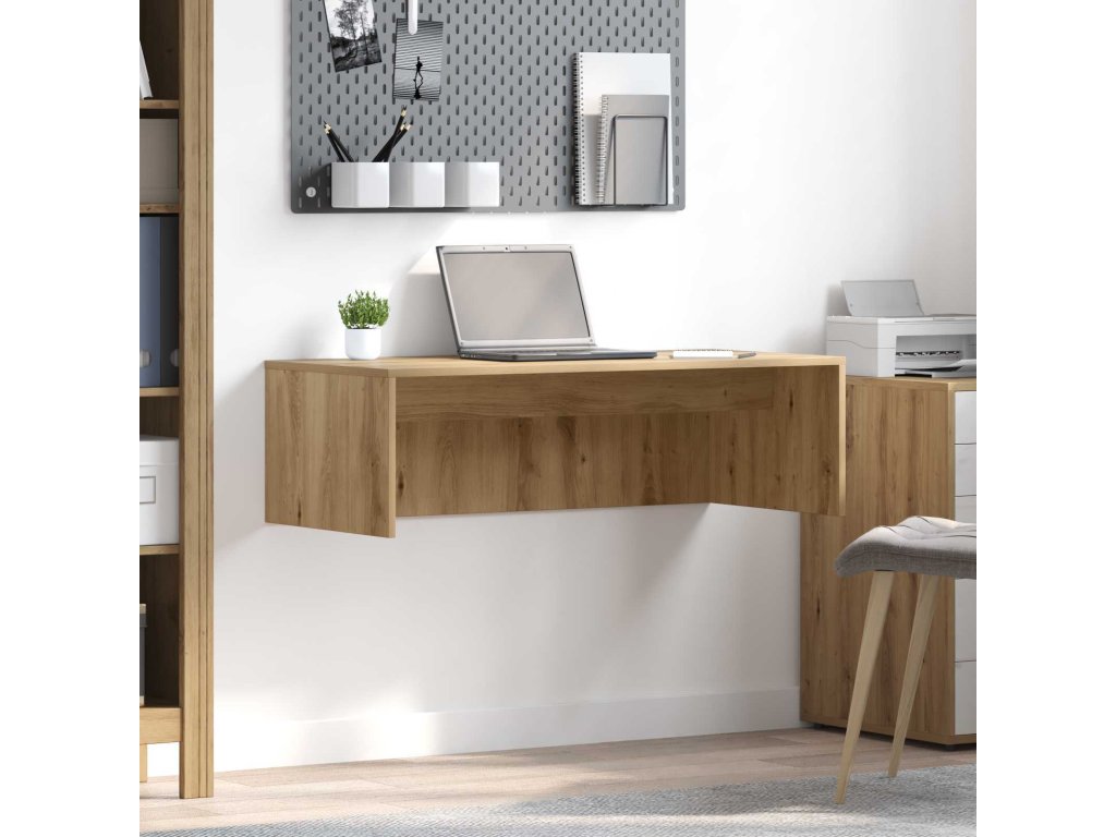 Tento nástěnný stůl je ideální pro domácí kanceláře nebo malé prostory, spojuje moderní eleganci s praktickou funkcí. Jeho čisté linie a minimalistický design dělají z něj stylový kousek do každé místnosti, zatímco inženýrský dřevěný povrch nabízí snadno udržovatelný pracovní prostor, který je super pro profíky nebo studenty. Pomáhá udržet podlahu uspořádanou, díky čemuž je prostředí hezky otevřené.