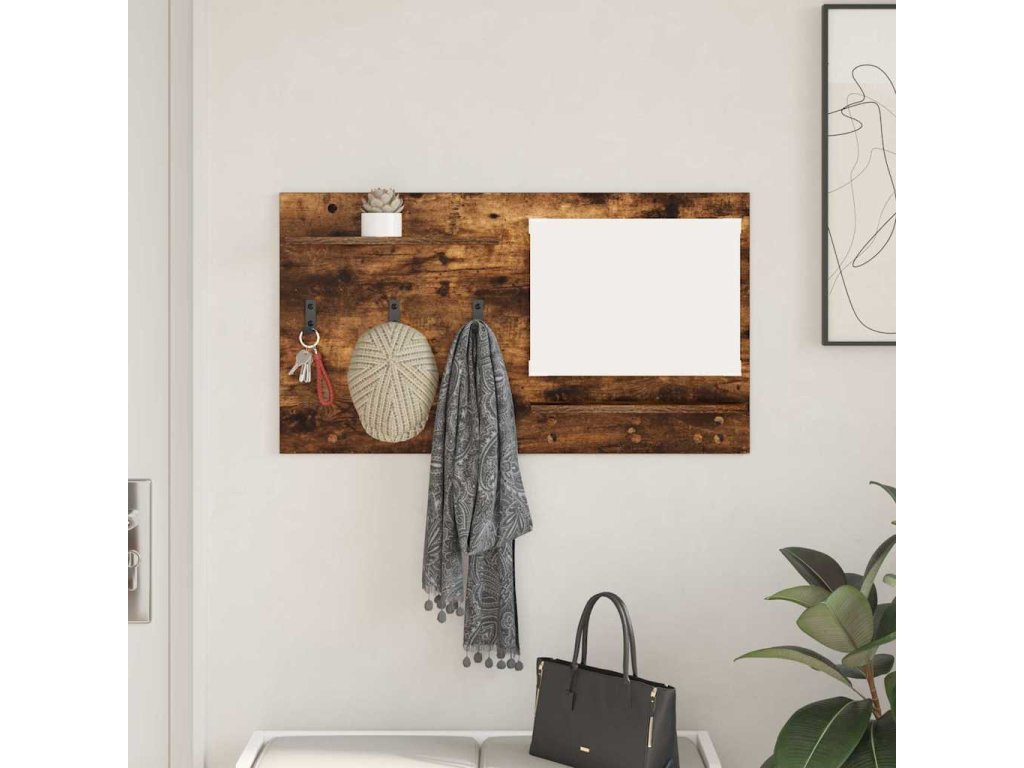 Nástěnný věšák na kabáty s policí Kouřový dub 90 x 10 x 50 cm [874519]