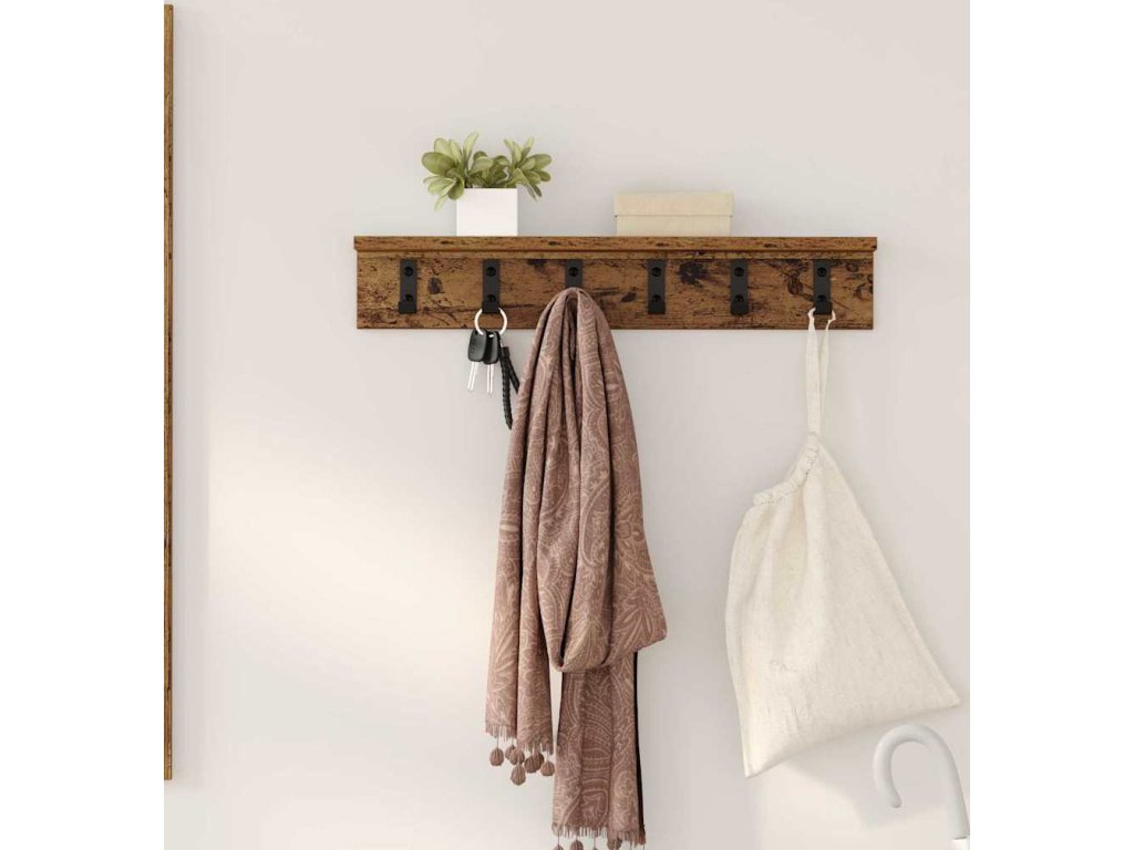 Nástěnný věšák na kabáty Staré dřevo 60 x 10,5 x 10,5 cm [874361]