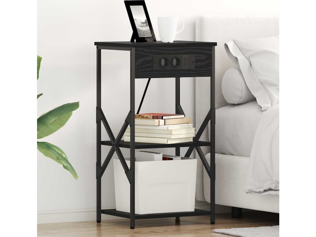 - Součásti: Tento stůl myslí na funkčnost, má police, které poskytnou dostatek místa pro vaše noční potřeby. Pro pohodlí je vybaven nabíjecí stanicí, která vám umožní nabíjet zařízení přímo u postele.