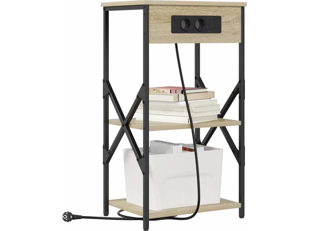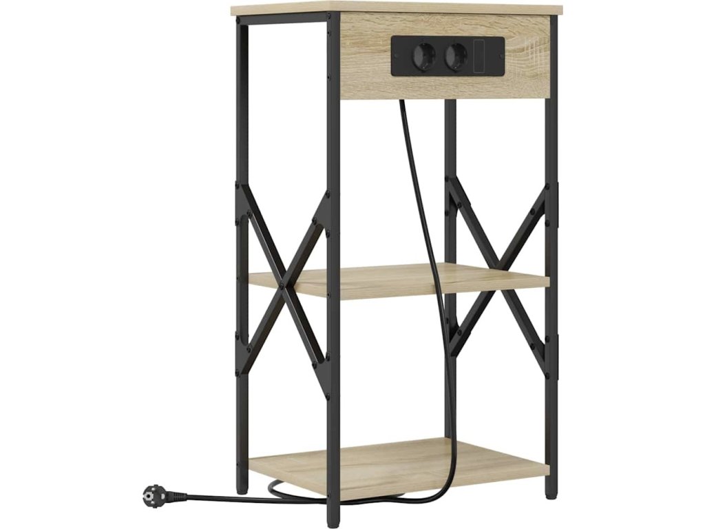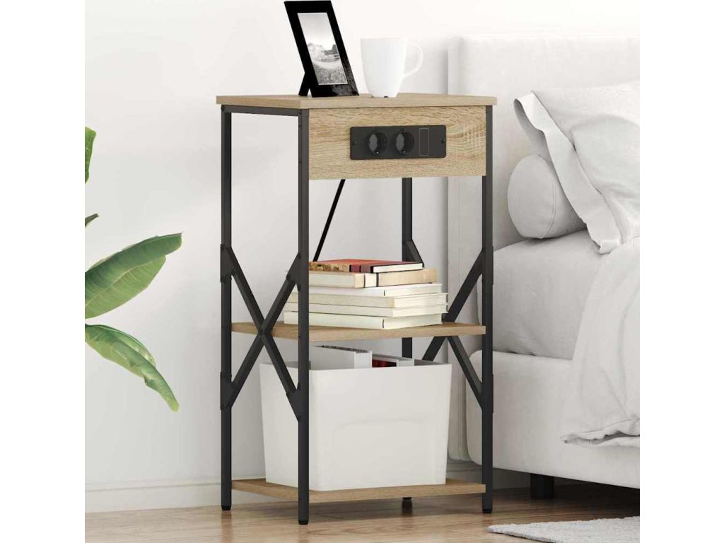 - Součásti: Tento stůl myslí na funkčnost, má police, které poskytnou dostatek místa pro vaše noční potřeby. Pro pohodlí je vybaven nabíjecí stanicí, která vám umožní nabíjet zařízení přímo u postele.