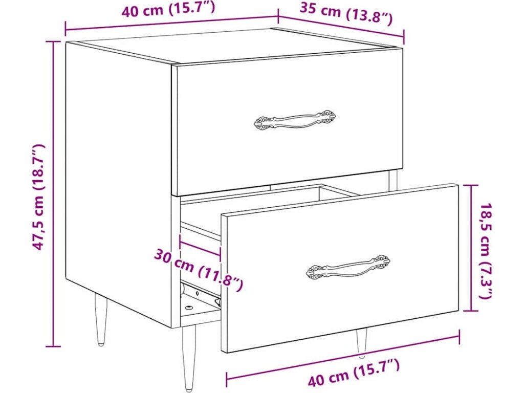 - Kuželové ocelové nohy: Elegantní černé kuželové nohy dodávají kabinetu moderní a stabilní postoj, který sebevědomě zapadne do každého interiéru ložnice a vylepší celkový vzhled.