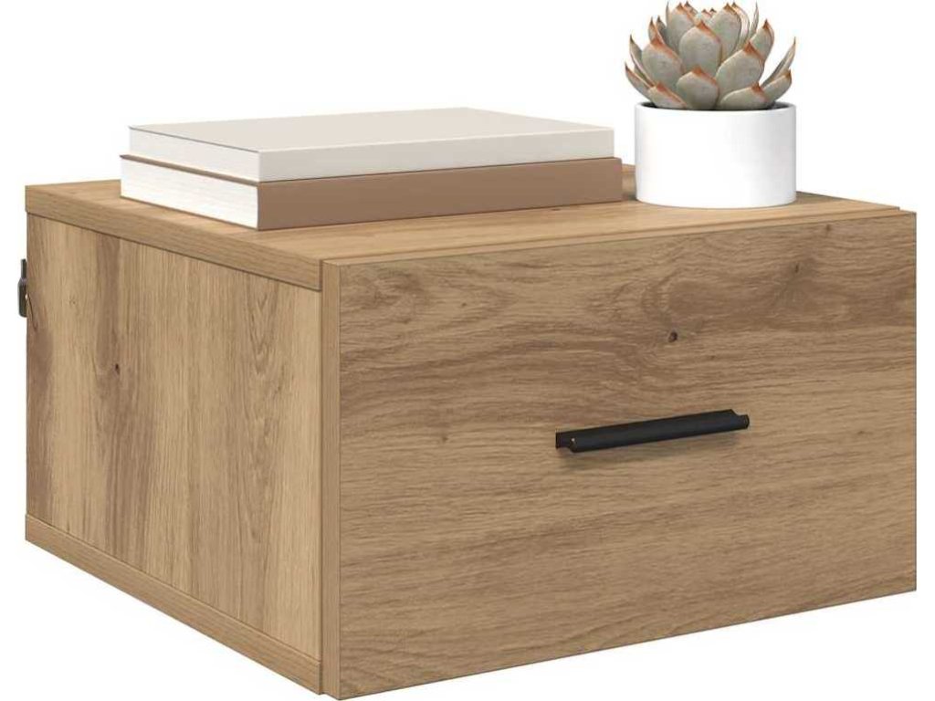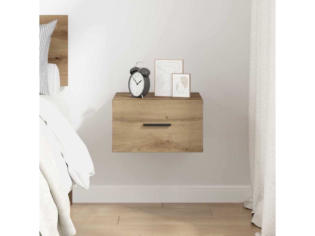 Tahle noční skříňka kombinuje praktičnost s rustikálním šarmem. Je z kompozitního dřeva a dá se připevnit na stěnu, takže ti ušetří místo na podlaze a perfektně zapadne do tvé ložnice. Díky čtvercovému tvaru a bohaté hnědé barvě dodává všemu teplo a styl, ideální pro klidný a uklizený spánek.