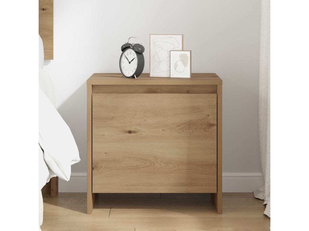 - Materiály: Tenhle noční stolek je vyrobený z kvalitního kompozitního dřeva, což mu dodává odolnost a elegantní vzhled. Materiál je navržen tak, aby vydržel každodenní používání a současně si uchoval hezký vzhled. Povrch kompozitního dřeva je odolný proti opotřebení, což znamená, že údržba je jednoduchá a snadná pro moderní domácnosti, spojující styl a praktičnost.