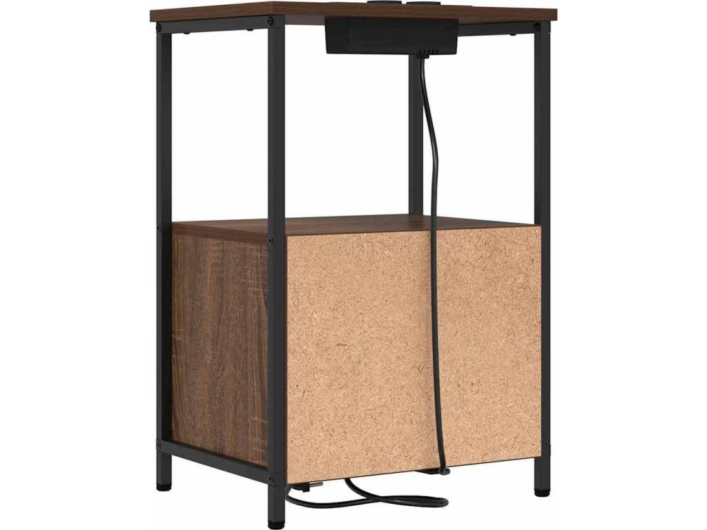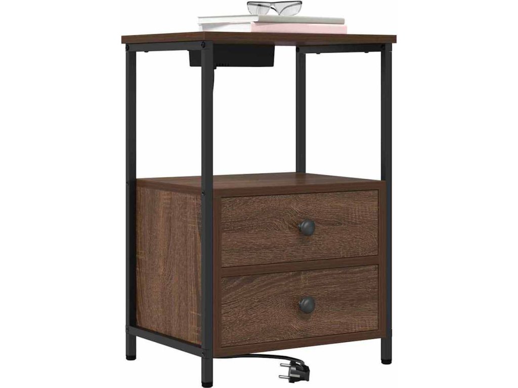 Tenhle noční stolek s vestavěnou nabíjecí stanicí spojuje funkčnost a rustikální šarm, takže se hodí do každé ložnice. Jeho kompaktní, obdélníkový tvar perfektně zapadne vedle postele a nabízí super místo na lampu, budík nebo osobní věci, zatímco tvá zařízení zůstávají nabitá a připravená.
