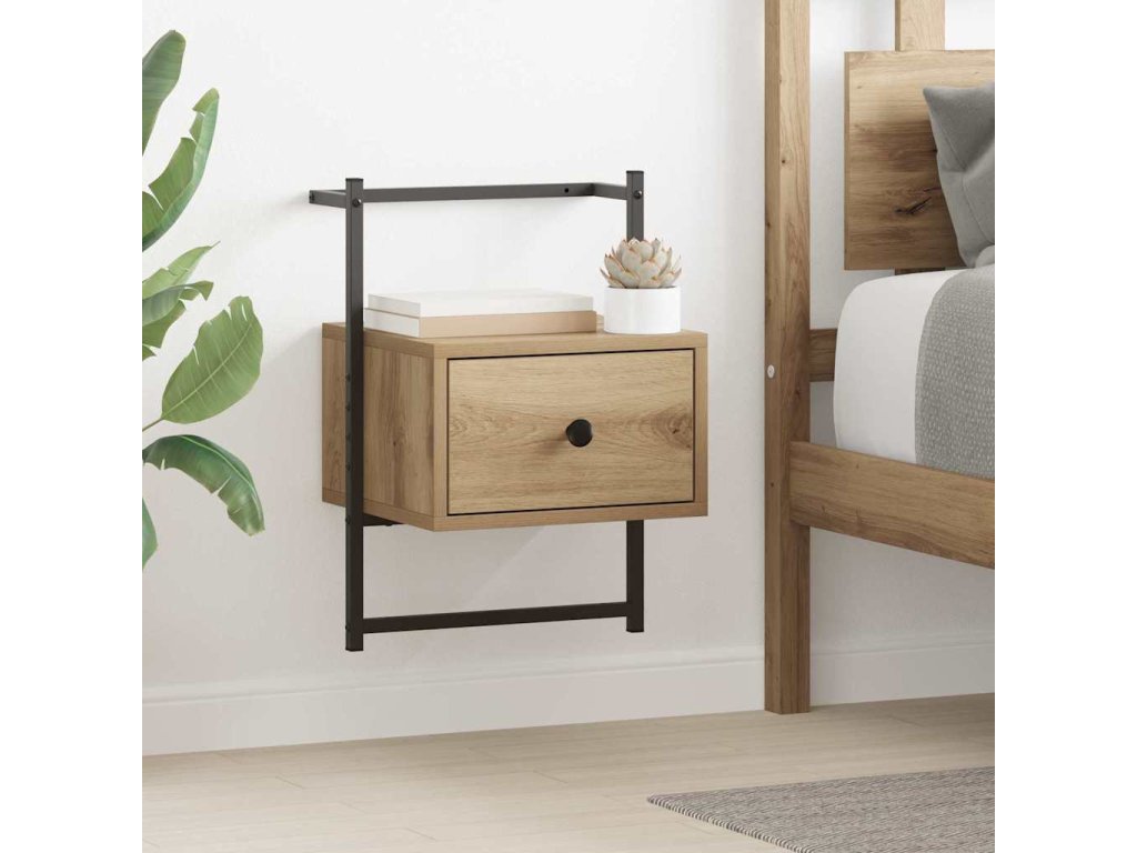 Tento moderní noční stolek nabízí funkcionalitu a styl v jedné. Jeho rustikální vzhled, viditelný ve dřevě a pevném kovovém rámu, skvěle sedí do různých ložnic. Má dost prostoru na osobní věci a dodává eleganci noční rutině. Stolek je praktickým kouskem pro každodenní potřeby a ozdobné činnosti, takže váš osobní prostor zůstane uklizený a příjemný.