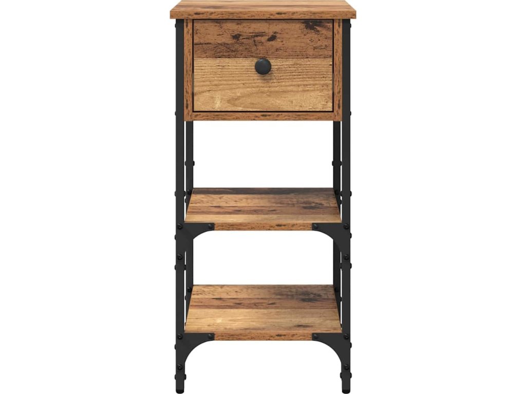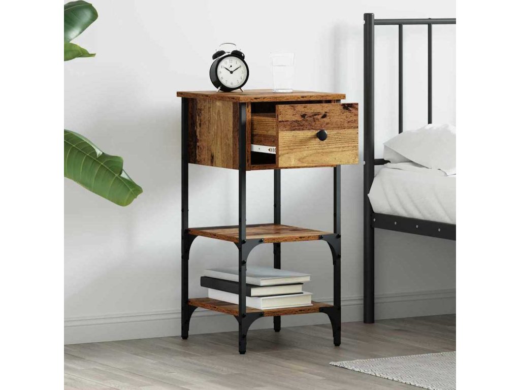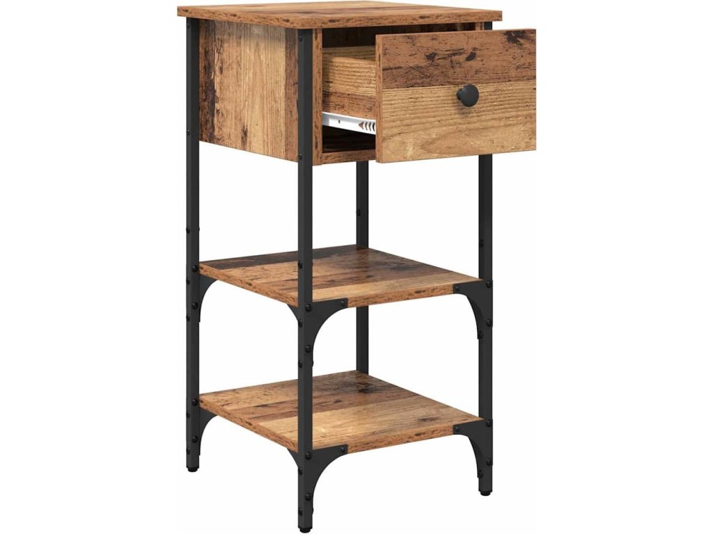 - Materiály a konstrukce: Noční stolek je z kvalitních dřevěných desek a železa, takže má robustní a odolný povrch. Tato kombinace má dlouhou životnost a je pěkná na pohled.