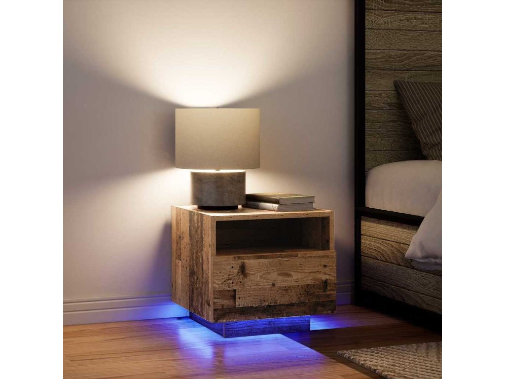 - LED pásky S LED pásky, tenhle stolek přináší příjemné osvětlení do místnosti. Flexibilní LED světla se snadno připevňují, takže je ideální pro noční atmosféru. Perfektní pro čtenáře nebo na vytvoření útulné atmosféry, tato funkce promění obyčejný noční stolek v užitečného pomocníka.