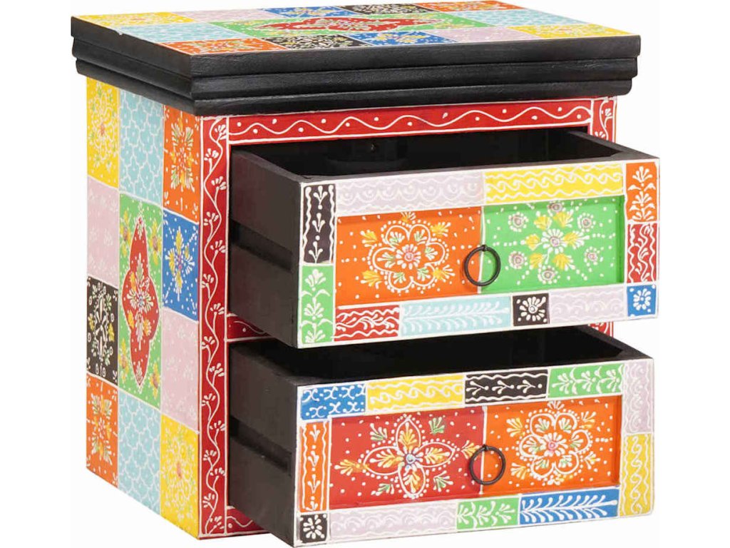 - Exotický design Oslavte bohémský styl s tímto nočním stolkem. Úžasná kombinace barev a vzorů dodá vaší ložnici jedinečný šmrnc a promění ji v kreativní oázu.