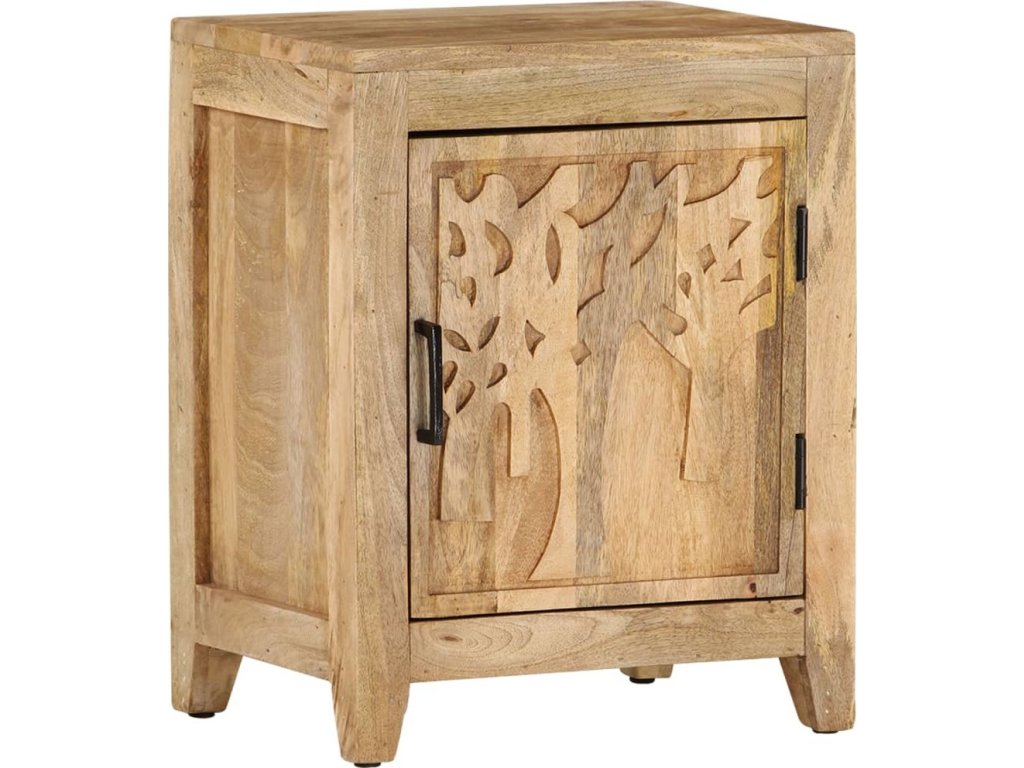 Odkládací skříňka je vyrobená z masivního mangovníku, tropického tvrdého dřeva s velkou nosností. Rovněž výborně odolává opotřebení, a proto je stabilní a má dlouhou životnost. Noční stolek má robustní horní desku, na kterou můžete umístit lampu, budík nebo cokoliv jiného, co v noci potřebujete mít po ruce. Za dvířky najdete prostornou přihrádku, která nabízí dostatek místa pro uspořádání menších předmětů na dosah ruky.