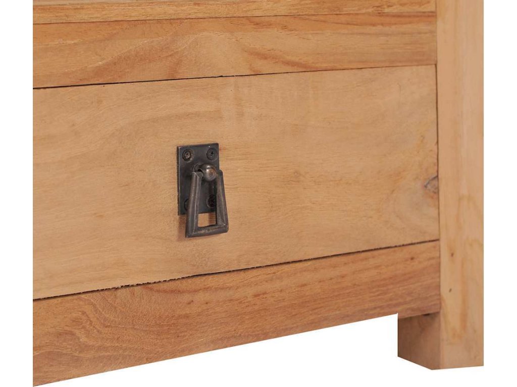 Noční stolek je zhotovený z masivního teakového dřeva, je tedy velmi odolný a má dlouhou životnost. Robustní horní deska se skvěle hodí k umístění budíku, lampičky na čtení, knih apod. a také ji můžete využít k vystavení zarámovaných fotografií nebo jiných dekorativních předmětů. Zásuvka a police navíc poskytují dostatek prostoru pro přehledné uložení různých drobných věcí na dosah ruky. Tento výrobek je dodávaný ve složeném stavu, montáž není nutná.