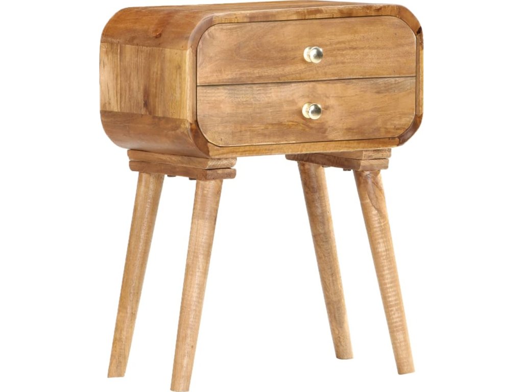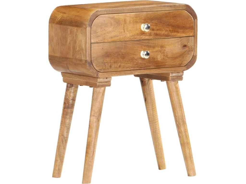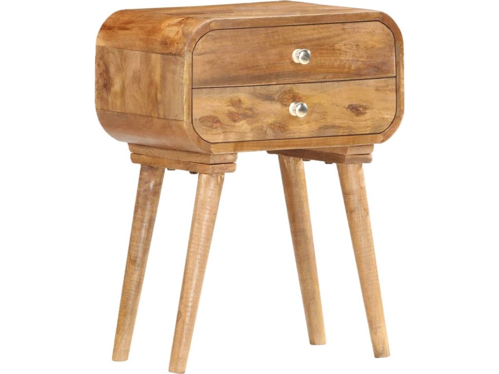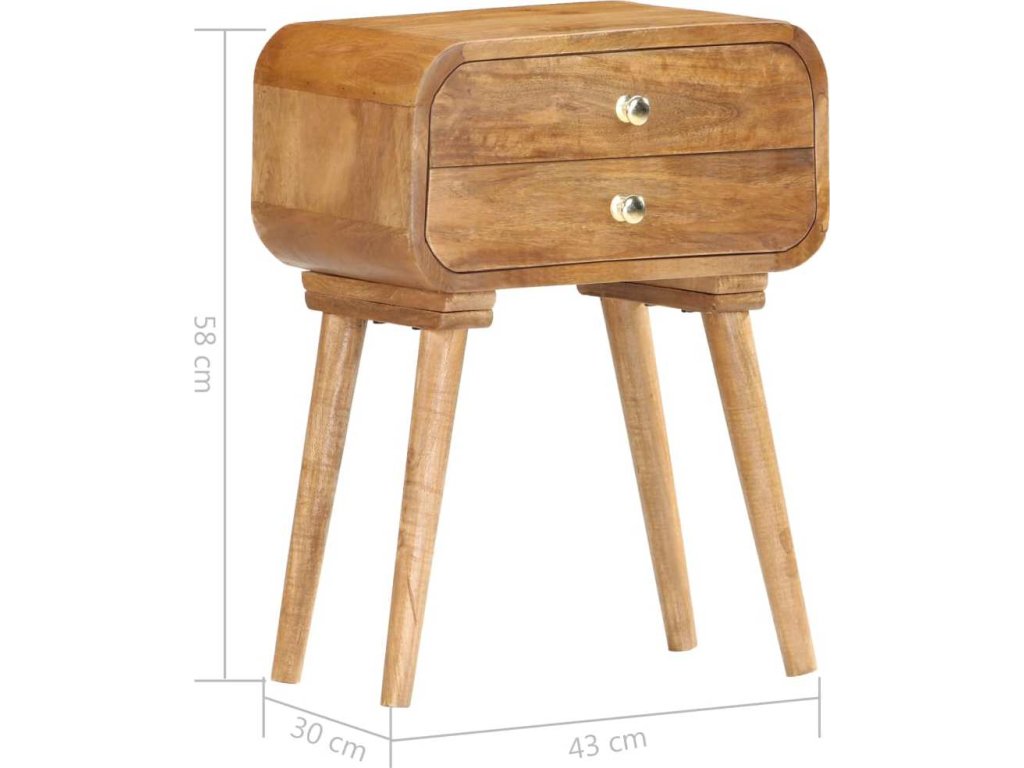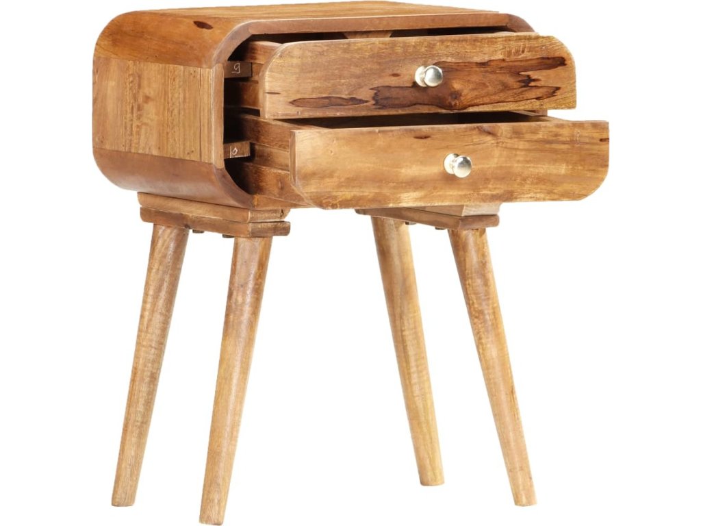 Noční stolek je vyrobený z masivního mangovníkového dřeva, které bylo naleštěné a nalakované, aby vynikl jeho půvabný a rafinovaný vzhled. Mangovník má odolné a robustní tvrdé dřevo s hnědými či zlatými pruhy a liniemi na povrchu. Ve stolku jsou pak 2 zásuvky, do kterých si můžete uspořádat drobnější předměty, abyste je měli neustále po ruce.