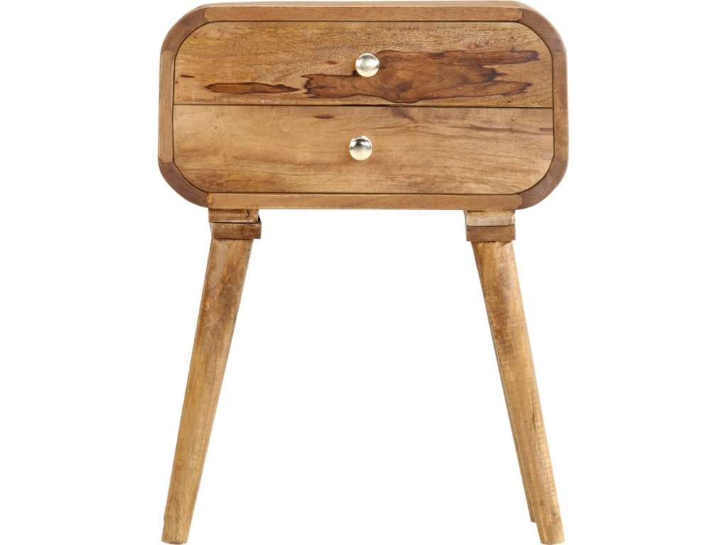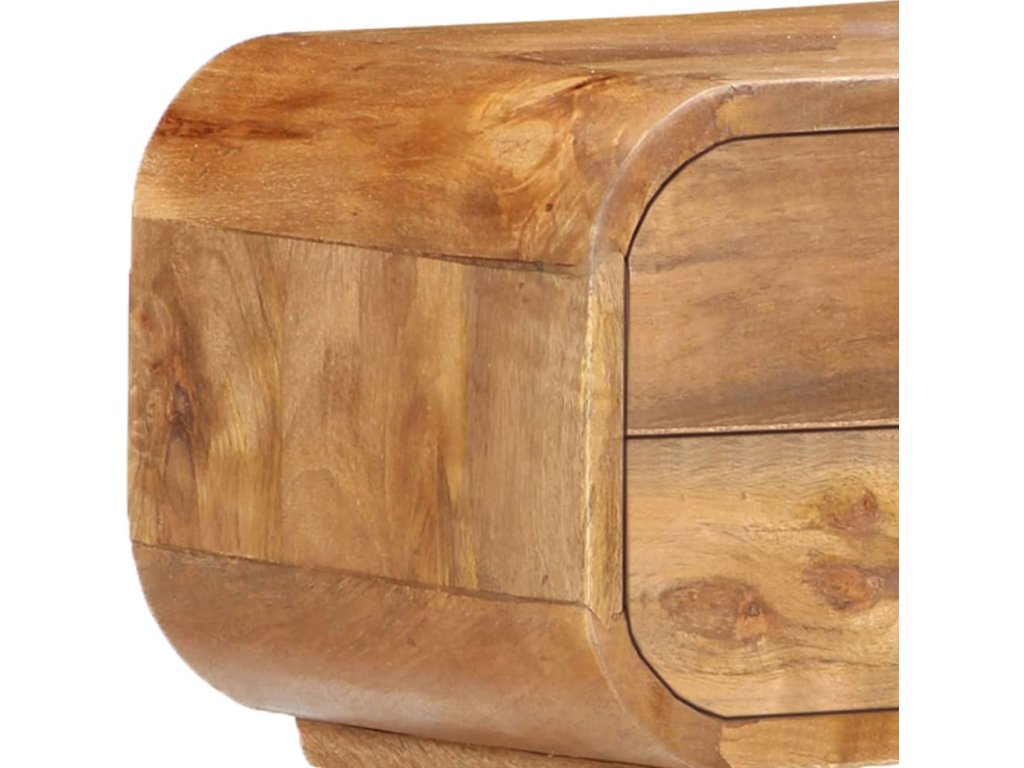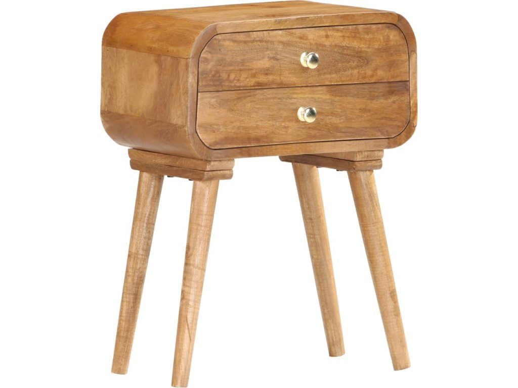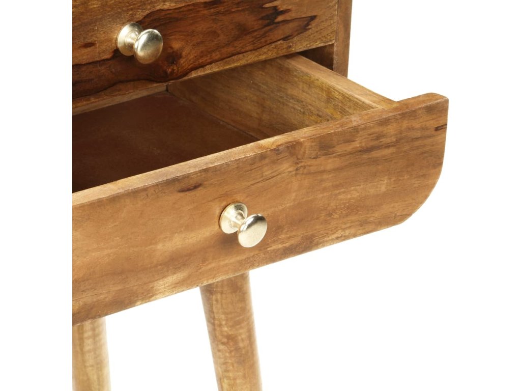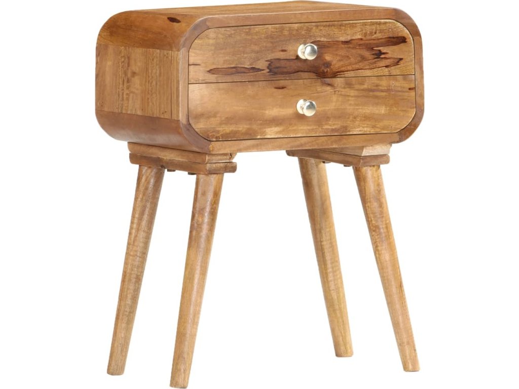 Noční stolek je vyrobený z masivního mangovníkového dřeva, které bylo naleštěné a nalakované, aby vynikl jeho půvabný a rafinovaný vzhled. Mangovník má odolné a robustní tvrdé dřevo s hnědými či zlatými pruhy a liniemi na povrchu. Ve stolku jsou pak 2 zásuvky, do kterých si můžete uspořádat drobnější předměty, abyste je měli neustále po ruce.