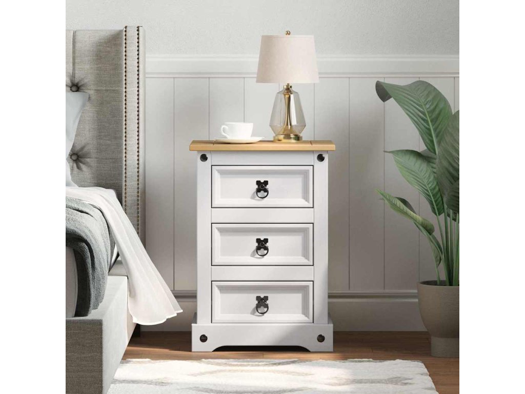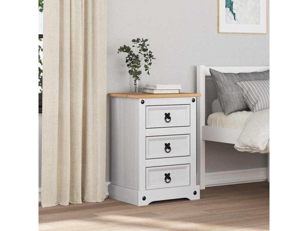 Noční stolek Bílá 45 x 35 x 64 cm Masivní borové dřevo [42021187]