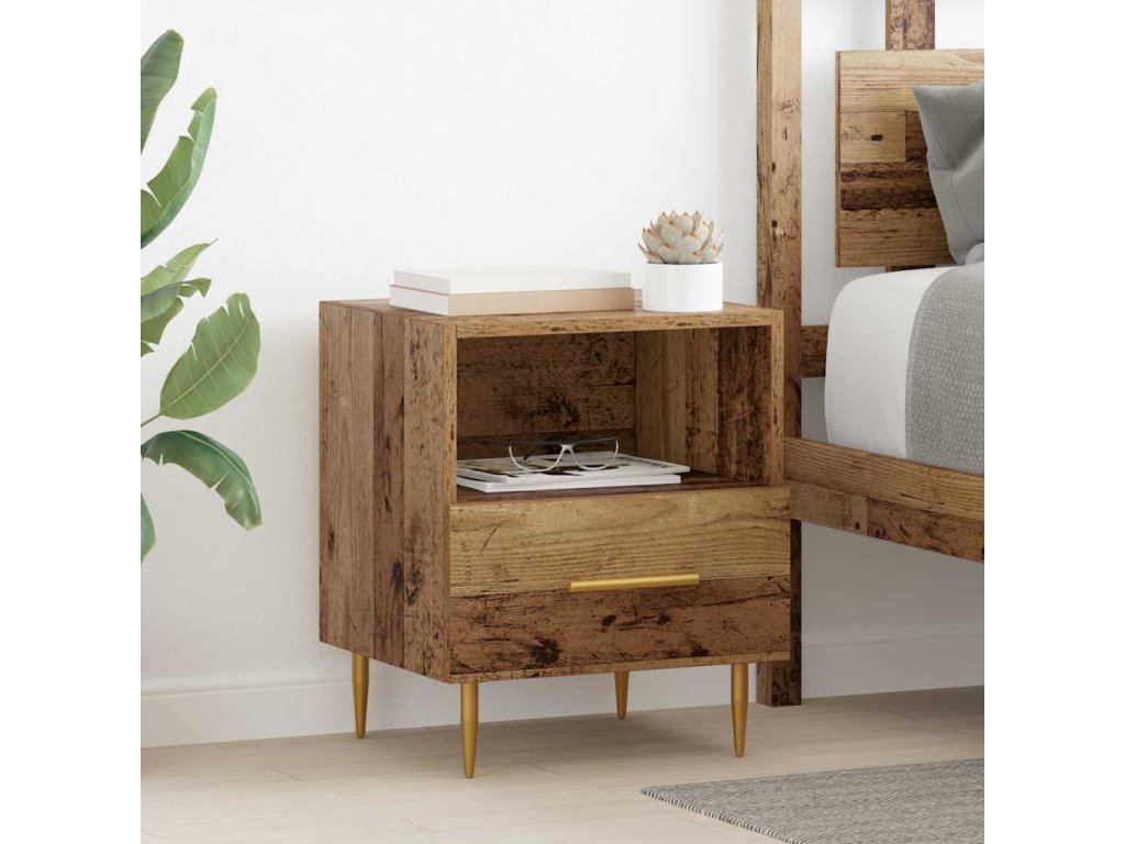 Tento moderní noční stolek spojuje rustikální kouzlo s moderním designem. Je ideální pro ty, kdo hledají kombinaci funkčnosti a stylu do ložnice. Skvěle se vejde vedle postele a nabízí boční plochu pro lampy, budíky nebo osobní věci. Kompozitní dřevo s matným povrchem zajišťuje, že vám vydrží, a má příjemnou vintage atmosféru, což z něj dělá sofistikovaný a zároveň robustní doplněk do každé ložnice.