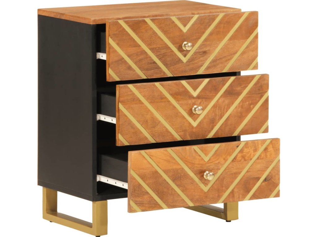 Noční stolek hnědý a černý 50 x 33 x 60 cm masivní mangovník [356792]