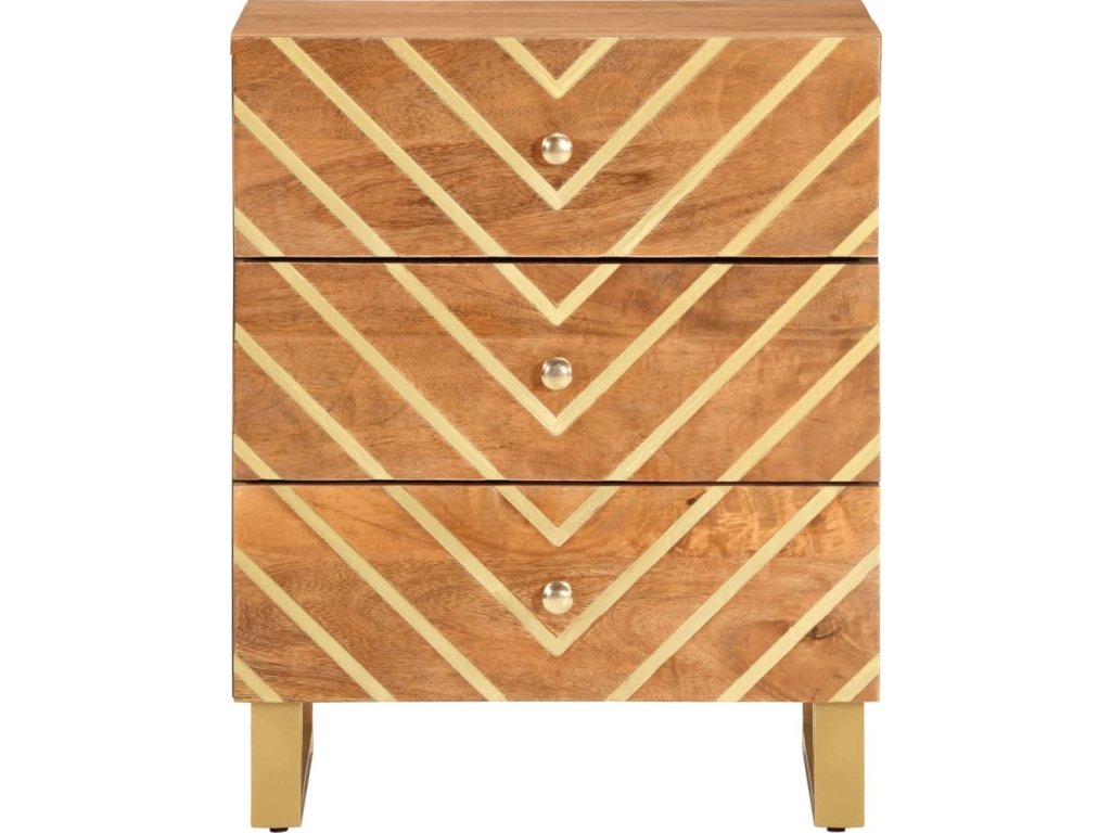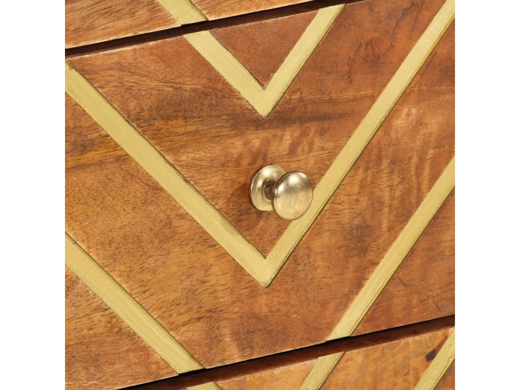 - Masivní mangovníkové dřevo: Masivní mangovníkové dřevo je pevné tropické tvrdé dřevo, ze kterého se vyrábí robustní nábytek. Krásná kresba dřeva propůjčuje každému kusu nábytku jeho jedinečný a od všech ostatních lehce odlišný vzhled. Skříňka je vyrobená z masivního mangovníkového dřeva, je tedy stabilní a odolná.