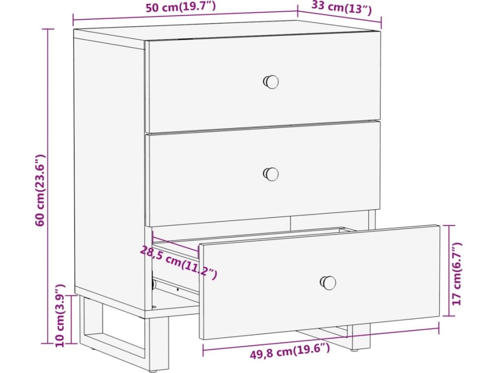 - Dostatek úložného prostoru: Noční stolek je navržen se 3 zásuvkami, ve kterých budete mít vaše věci uspořádané a neustále po ruce.