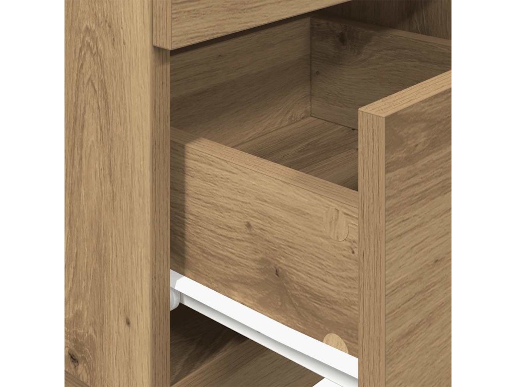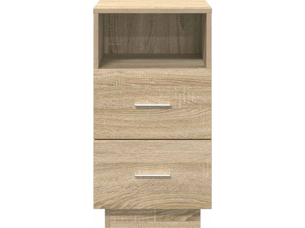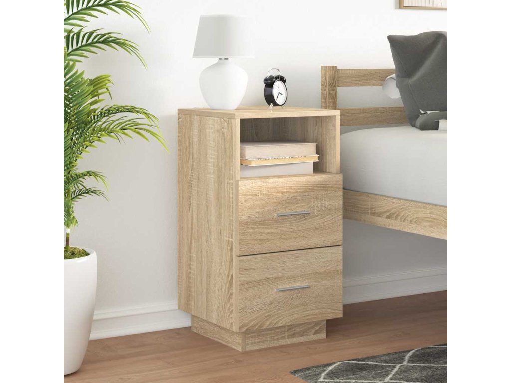 - Dostatek úložného prostoru: Skříňka poskytuje dostatek úložného prostoru díky dvěma zásuvkám a otevřenému úložnému prostoru, což vám umožní uspořádat a uložit předměty, jako jsou knihy, časopisy nebo osobní věci, a udržet si tak v ložnici pořádek.