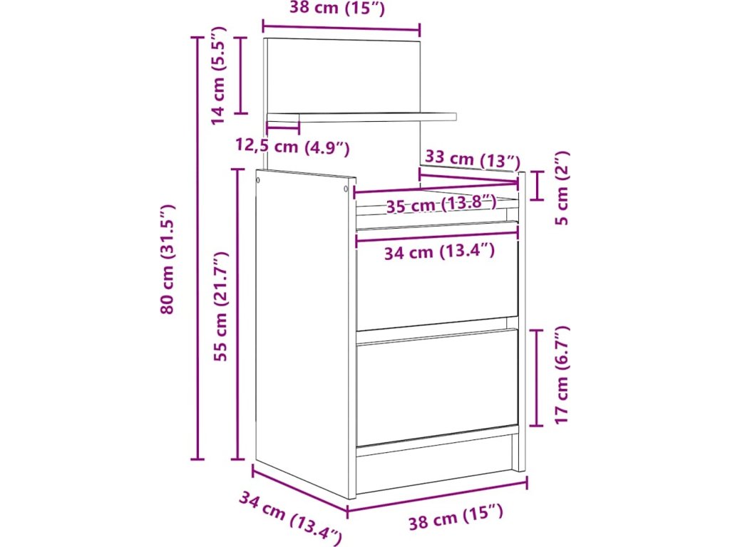 Noční stolek se 2 zásuvkami 38x34x80 cm [861359]
