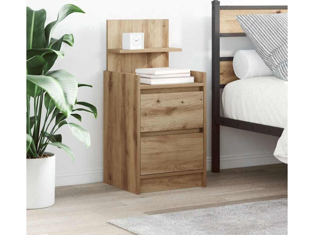 - Robustní horní část: Robustní horní deska nočního stolku je ideální pro umístění stolních lampiček, budíků, knih, rámečků s obrázky, malých rostlin v květináčích, dekorací nebo jiných nezbytností.
