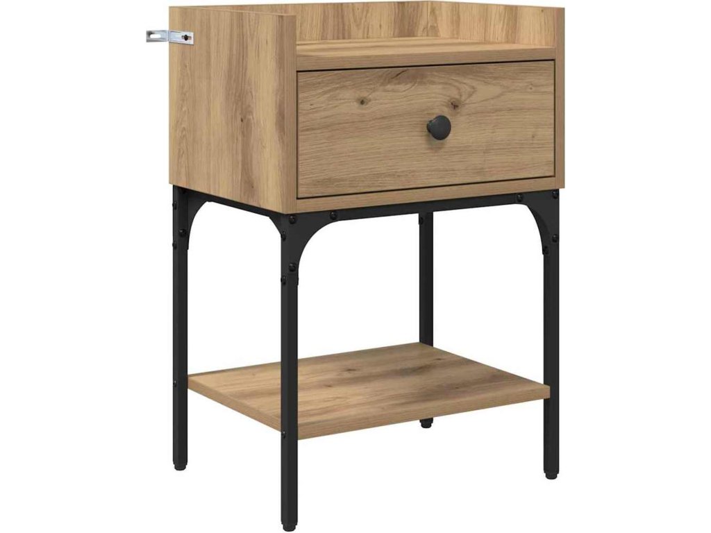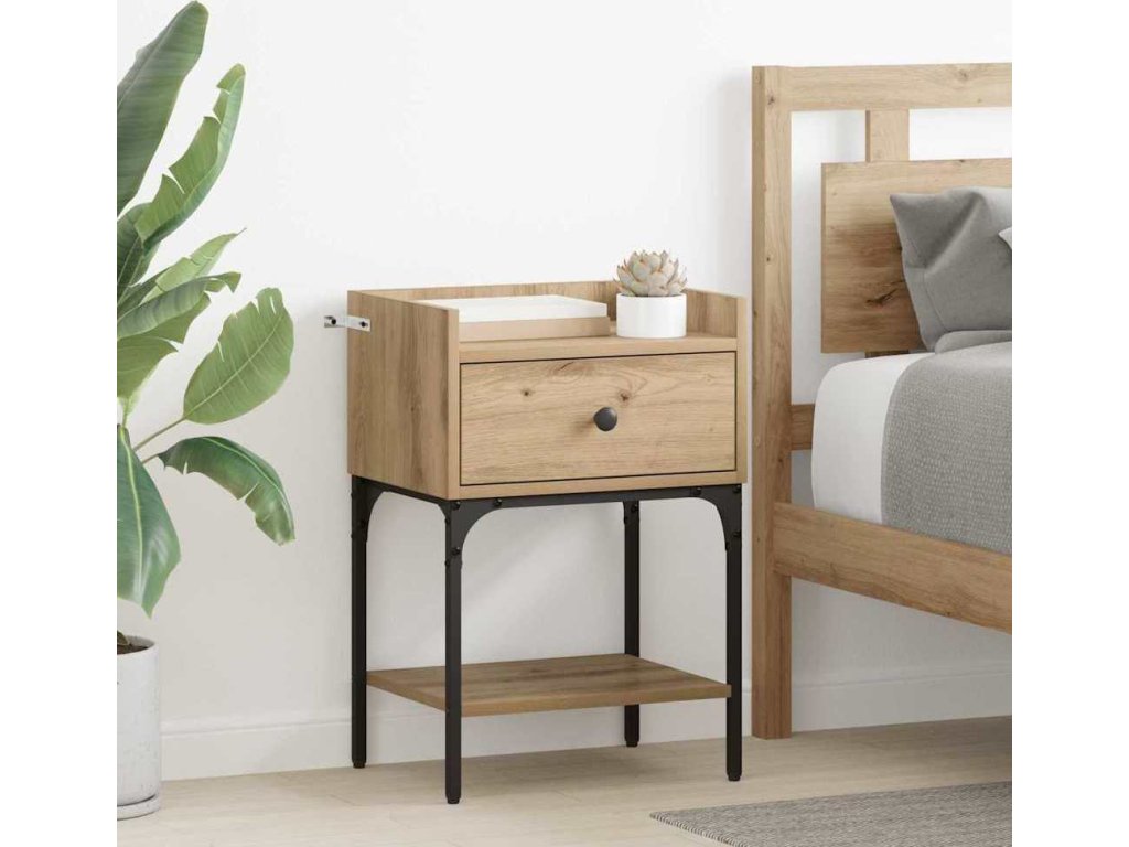 Tenhle úžasný noční stolek spojuje funkčnost a rustikální vzhled, takže je ideální pro úložný prostor a vypadá dobře. Design ladí s přírodním stylem, díky povrchům z umělého dřeva a pevným ocelovým nohám, poskytuje dostatek místa pro lampu či budík. Spojuje praktičnost a estetiku, takže se hodí do moderního bydlení.