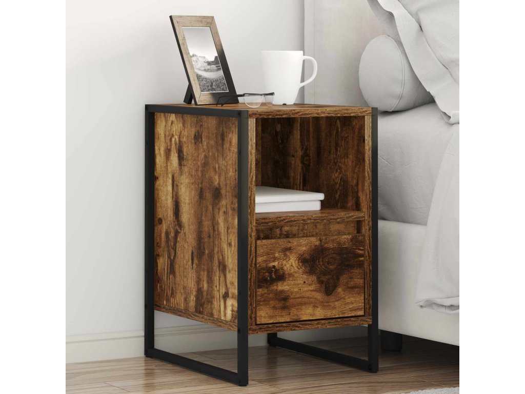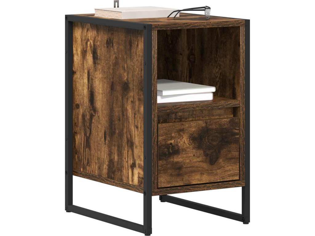 Tento industriální noční stolek spojuje styl a funkčnost a je tak skvělým kouskem pro moderní ložnice. Obdélníkový tvar a design inspirovaný industriálním stylem dodává prostoru šmrnc. Perfektní volba pro ty, kdo mají rádi estetiku i praktičnost.