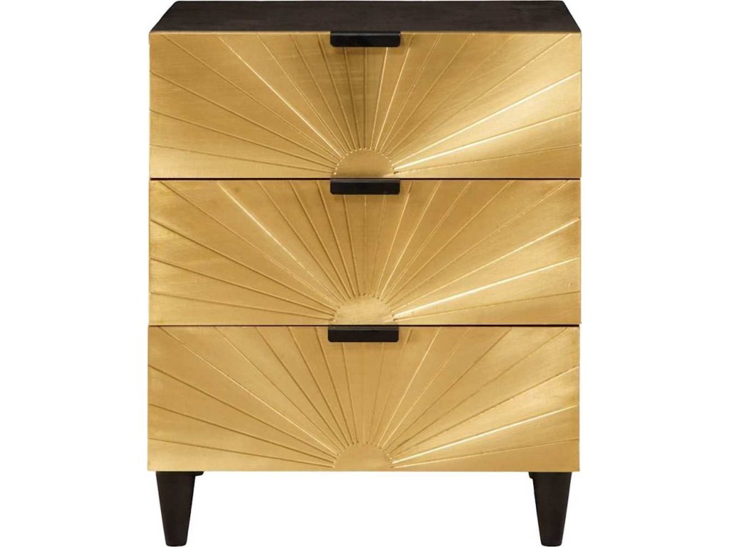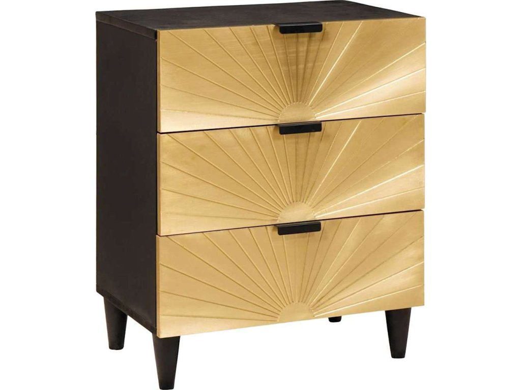 Tento moderní noční stolek spojuje styl s funkčností a skvěle vylepší atmosféru ve vaší ložnici. Jeho čisté linie a minimální detaily jsou esencí moderního designu. Vydrží díky masivnímu mangovému dřevu a inženýrským prvkům. Černá a zlatá kombinace je elegantní a nabízí potřebnou funkčnost pro každodenní úkony, jako je ukládání věcí nebo podpora lampy.