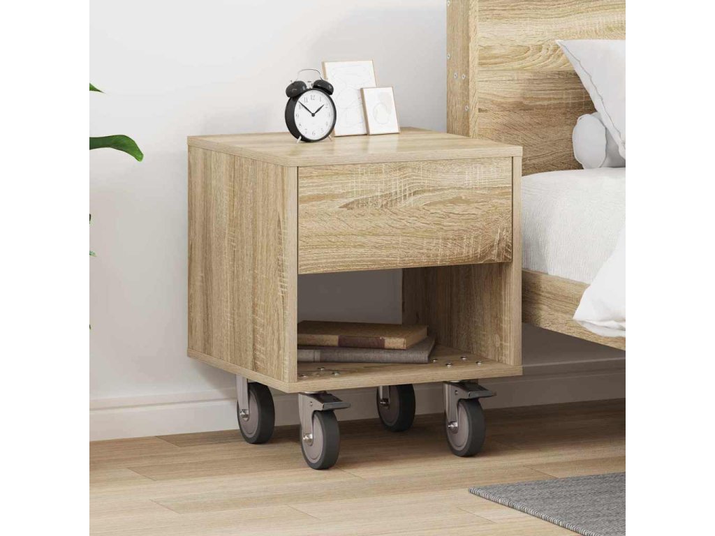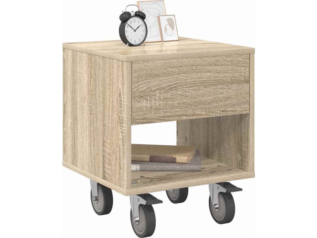 - Konstrukce z kompozitního dřeva Tenhle noční stolek je stabilní a odolný, takže skvěle zvládne tvoje úložné potřeby. Hladký povrch nejen vypadá dobře, ale taky se jednoduše čistí, takže ti ušetří čas na údržbu.