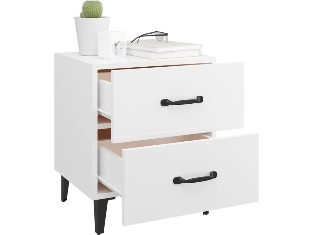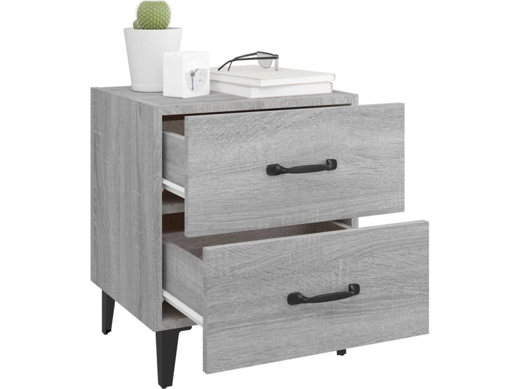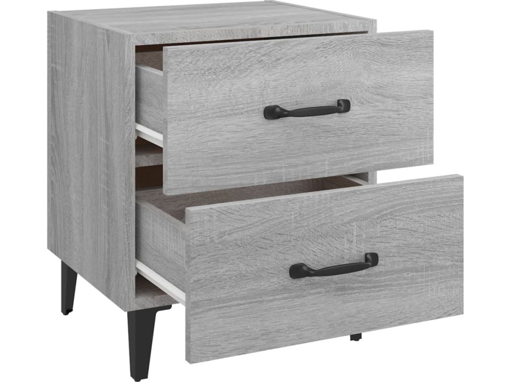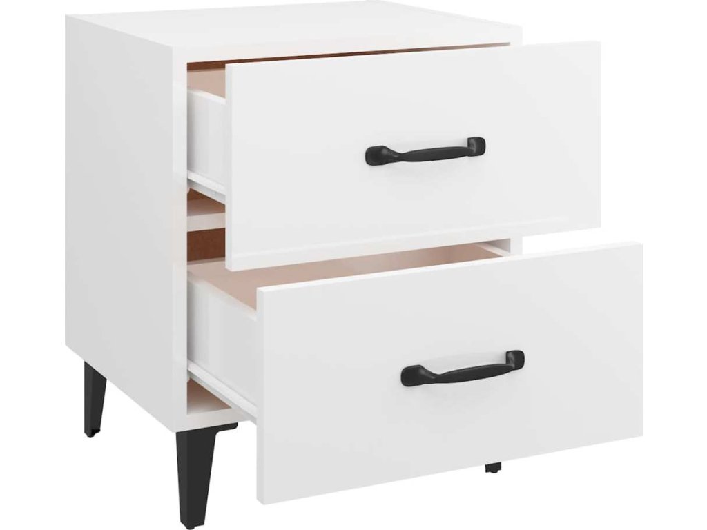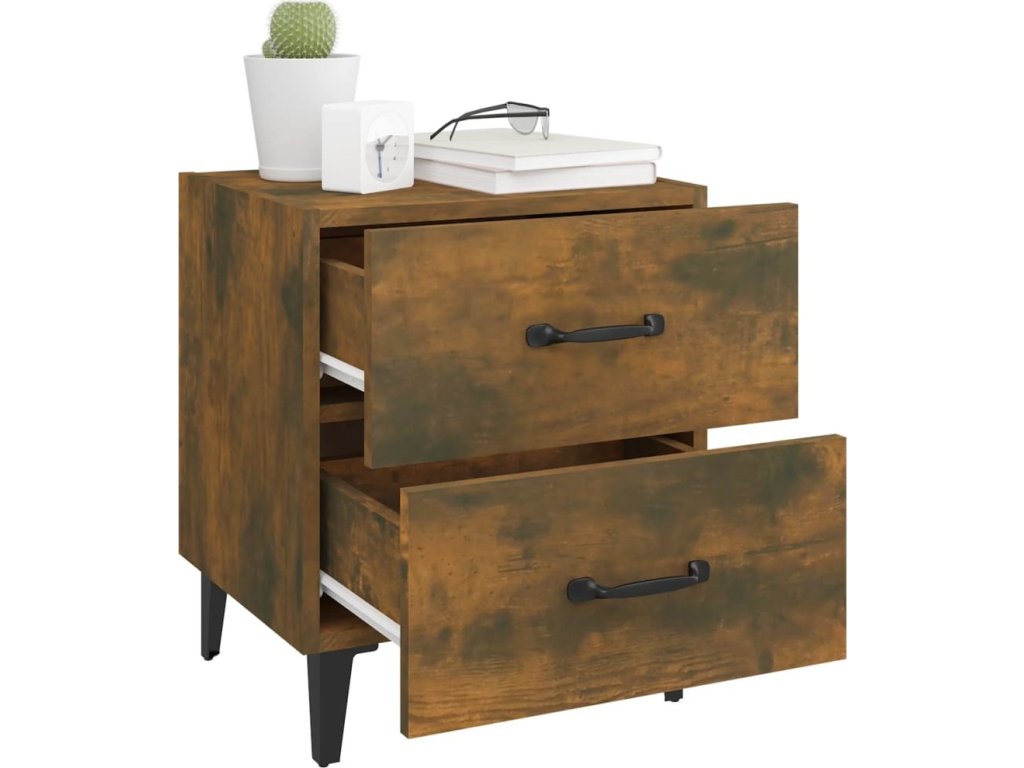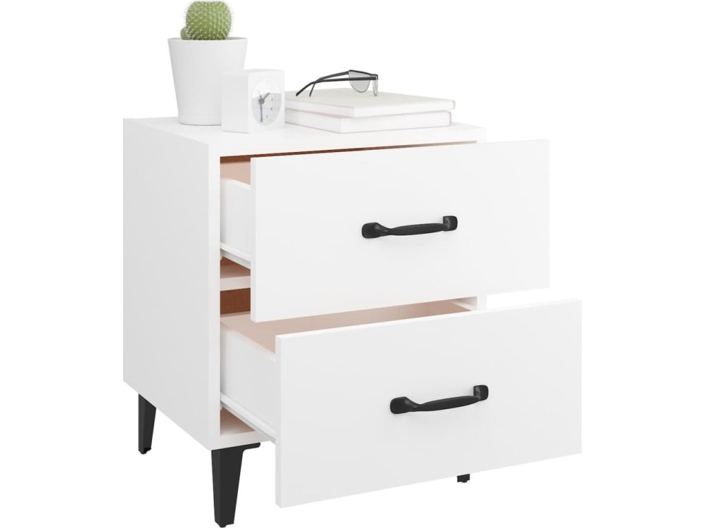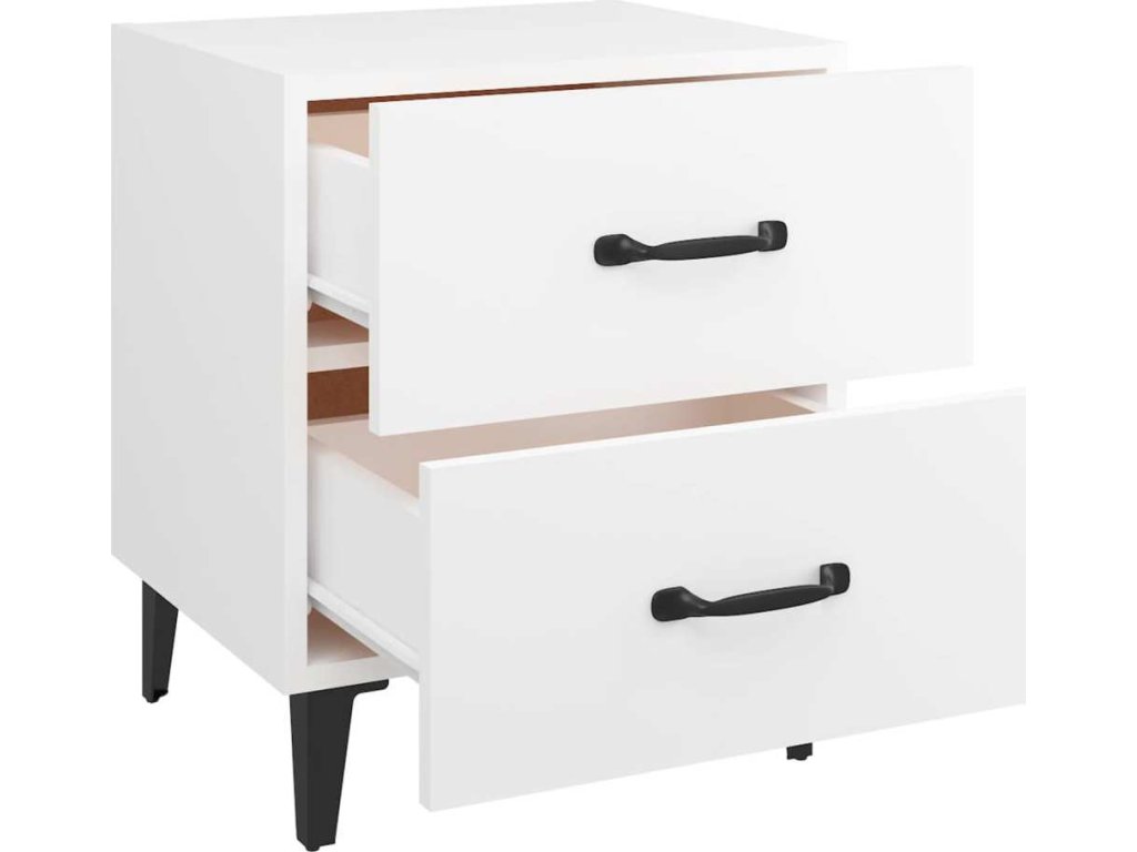 - Spousta úložného prostoru: Noční stolek je vybaven dvěma zásuvkami s kovovými úchytkami. V prostorných zásuvkách budete mít všechny své věci přehledně uspořádané.