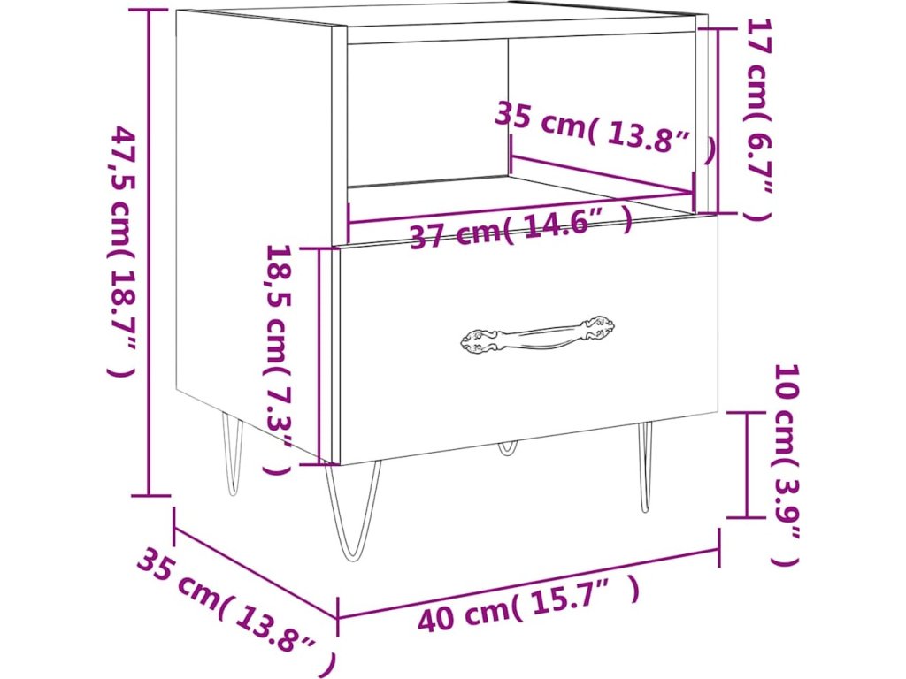 - Velký úložný prostor: Noční stolek s jednou přihrádkou a zásuvkou vám poskytne spoustu úložného prostoru, kam si můžete uschovat vaše knížky, multimediální zařízení a další věci a přitom je mít neustále po ruce.