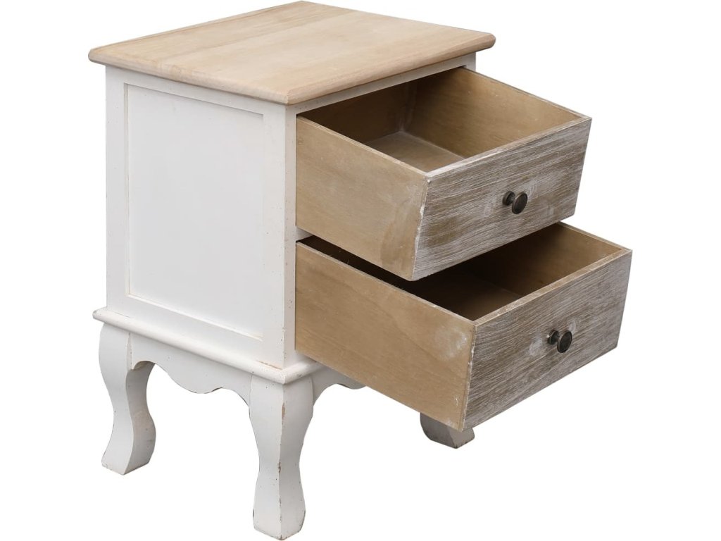 Noční stolek je vyroben ze dřeva pavlovnie, je tedy mimořádně odolný a stabilní. Najdete v něm 2 zásuvky, které vám poskytnou spoustu místa pro úschovu nejrůznějších menších předmětů. K čištění vám postačí navlhčený hadřík. Sestavení stolku k posteli je jednoduché. Balení obsahuje 2 stolky.