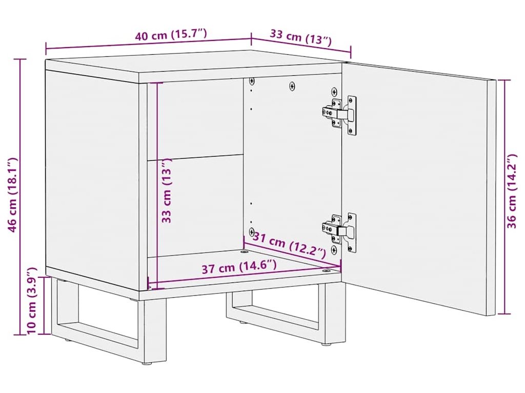 - Kovové nohy: Noční stolek se opírá o robustní kovové nohy, které zajišťují stabilitu, bezpečnost a pevnost.