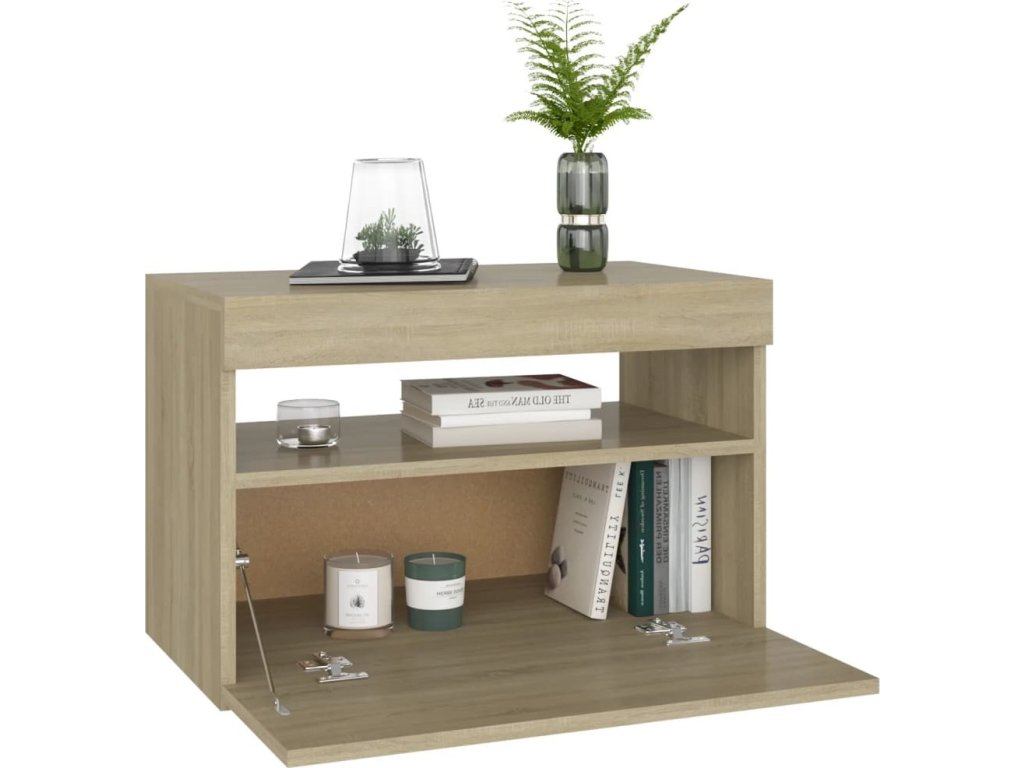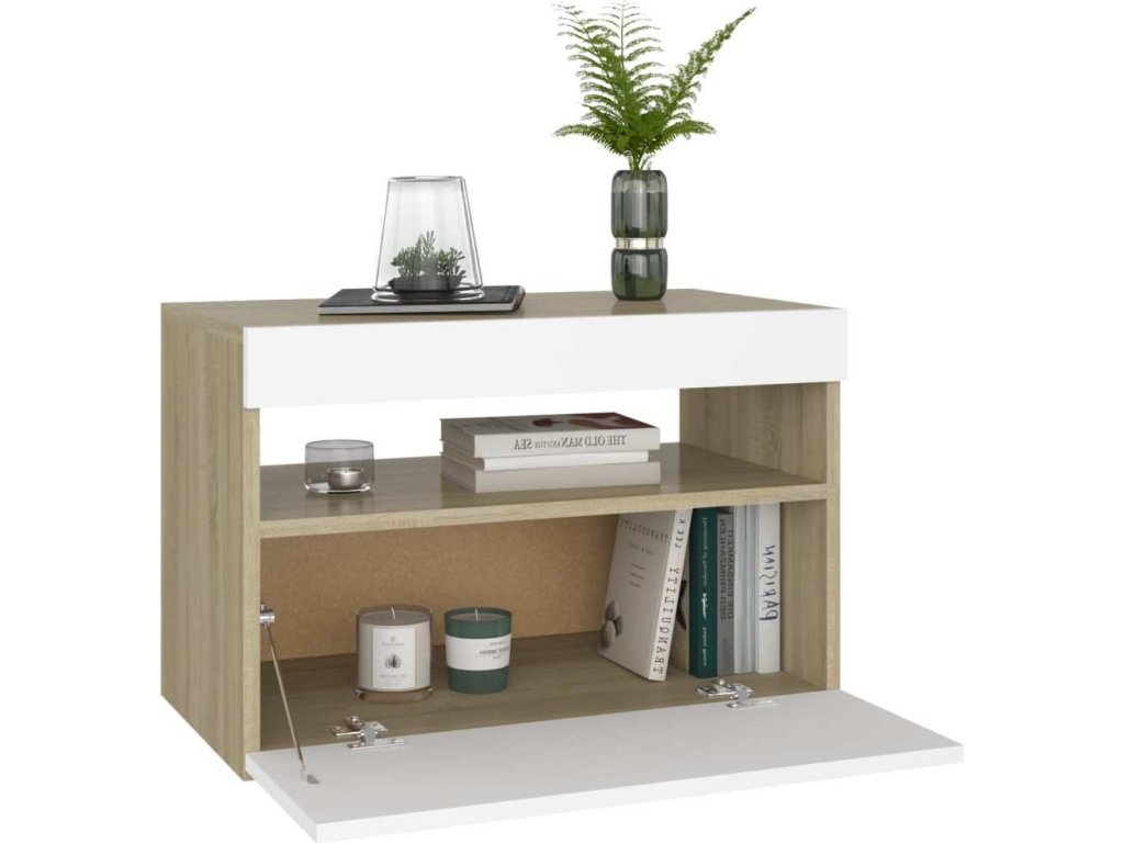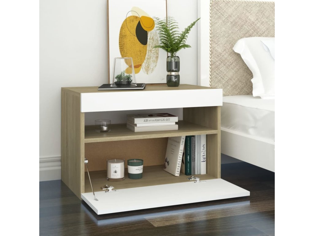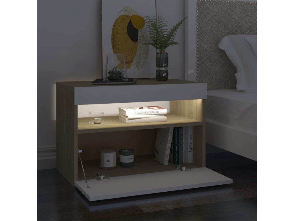 Odkládací skříňka má robustní konstrukci, takže má velmi dlouhou životnost. Navíc vám poskytne spoustu místa por vaše časopisy, knihy, dálková ovládání a další drobné předměty, které budete mít perfektně uspořádané a na dosah ruky. Noční stolky jsou vybavené RGB LED světly s několika různými nabídkami, které vám umožní změnit barvu světel nebo nechat světla přizpůsobit automaticky. LED osvětlení podtrhuje moderní vzhled skříňky a zdůrazňuje její trendy styl. Tyto noční stolky se navíc snadno čistí vlhkým hadříkem.