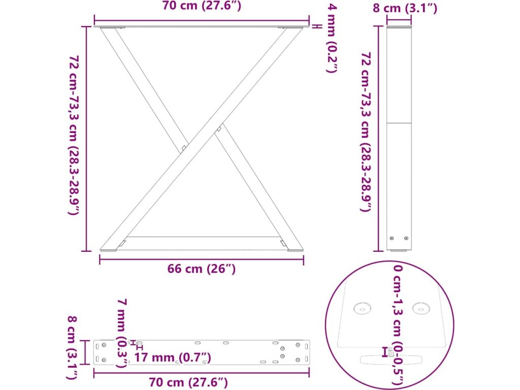 Nohy k jídelnímu stolu 2 ks 70 x (72-73,3) cm ocelové [4012726]
