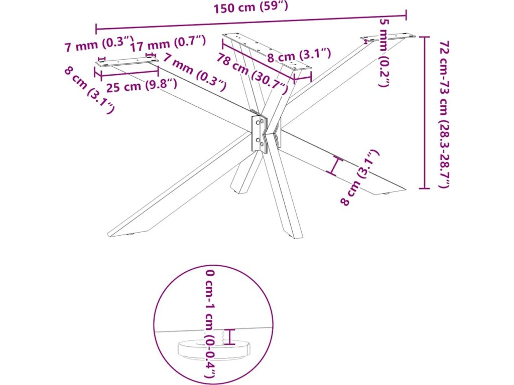 Noha jídelního stolu ve tvaru pavouka 150 x 78 x (72-73) cm ocel [4013116]
