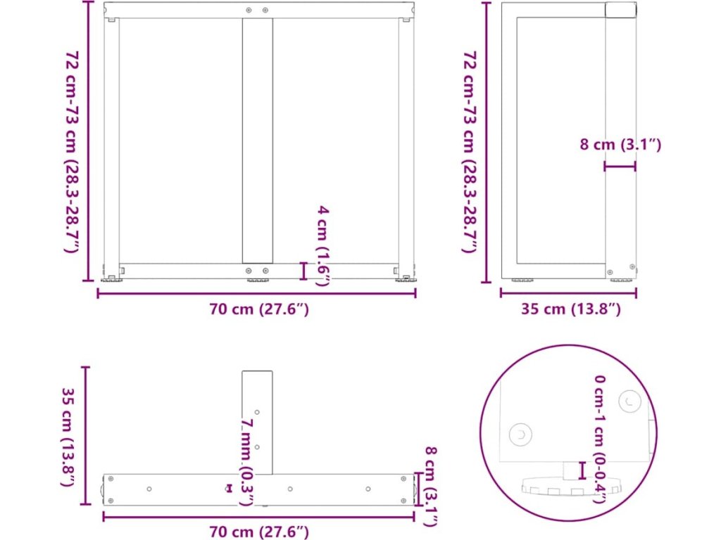Nohy k jídelnímu stolu ve tvaru T, 2 ks, , 70 x 35 x (72-73) cm, ocel [4013056]