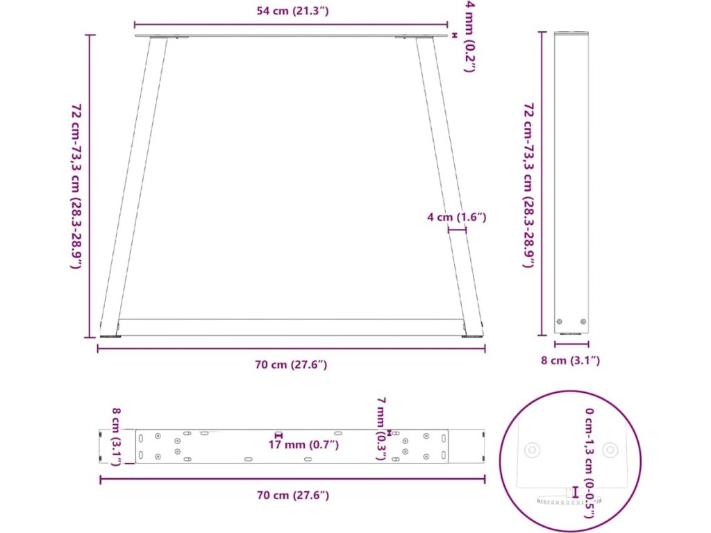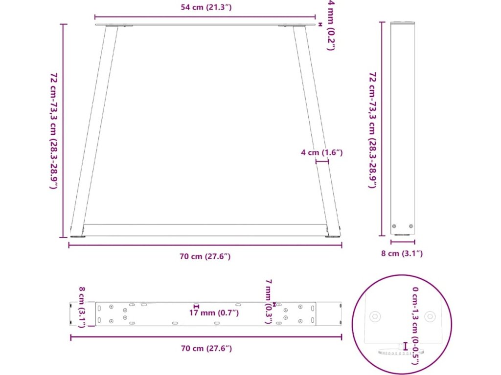 Nohy k jídelnímu stolu ve tvaru V, 3 ks, , 70 x (72-73,3) cm, ocel [4012585]