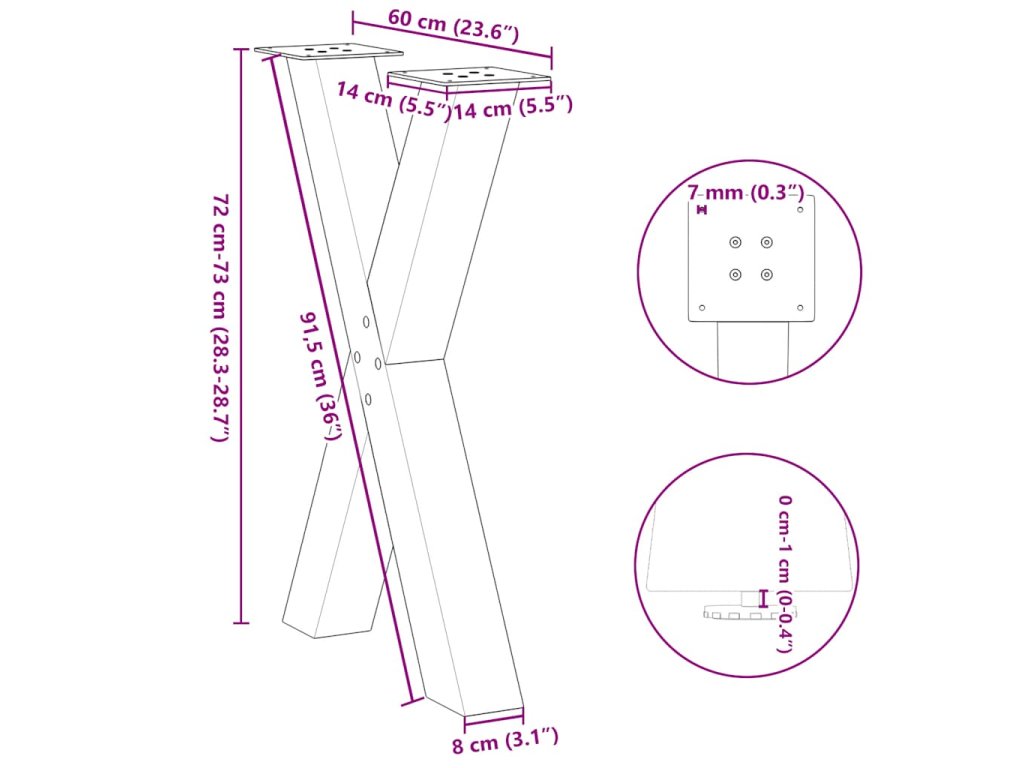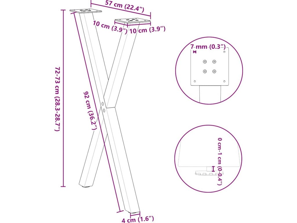 Nohy k jídelnímu stolu ve tvaru X, 2 ks, ocel, 60 x (72-73) cm, ocel [4012972]