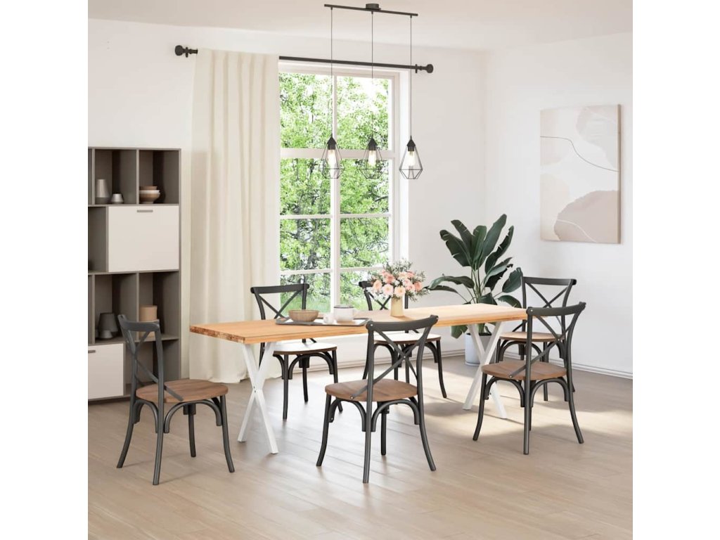 - Robustní konstrukce: Kovová noha stolu ve tvaru X zajišťuje, že unese i těžkou desku stolu.