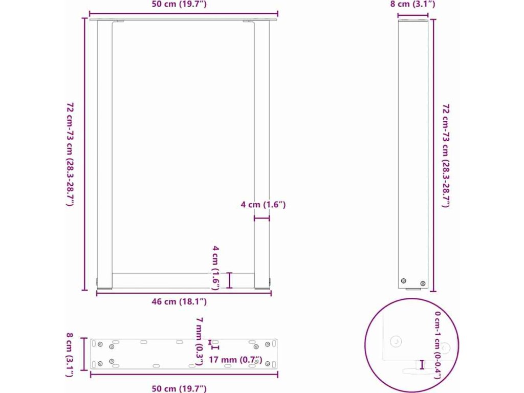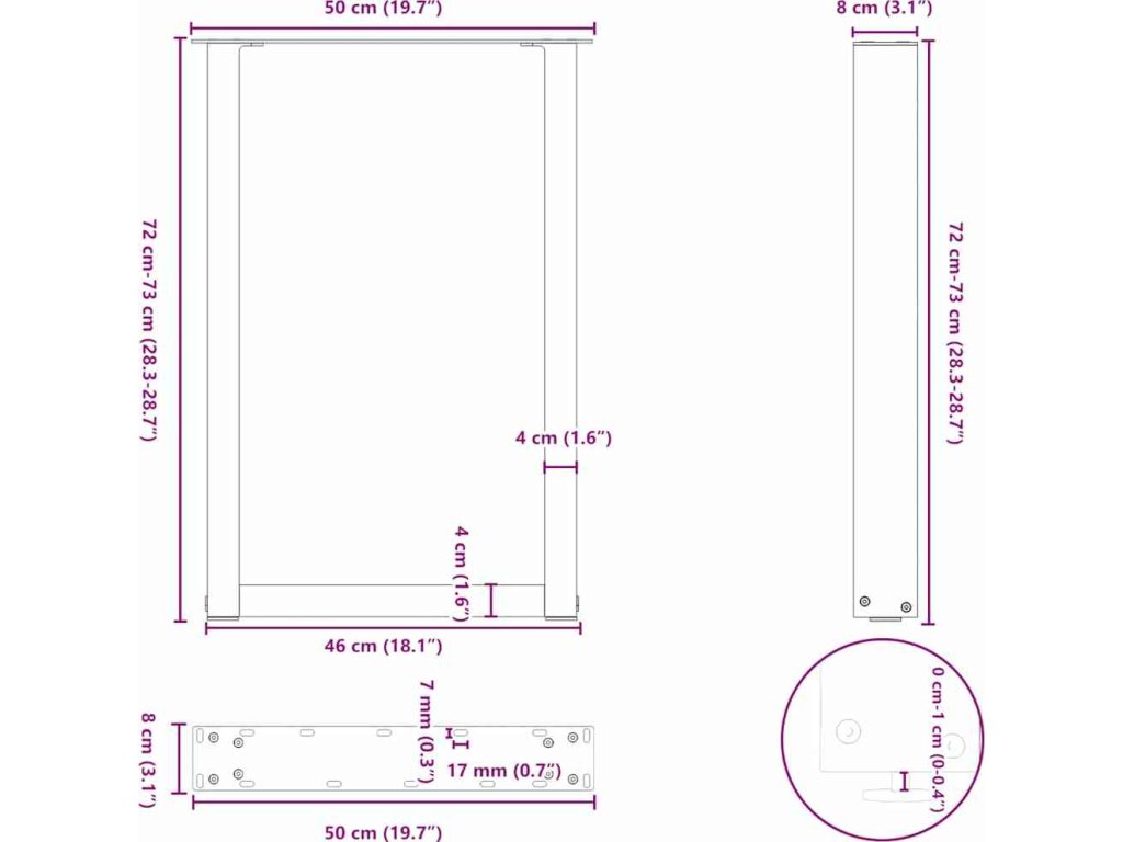 Nohy k jídelnímu stolu ve tvaru U, 2 ks, ocel, 50 x (72-73) cm, ocel [4013178]