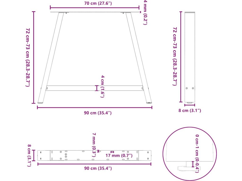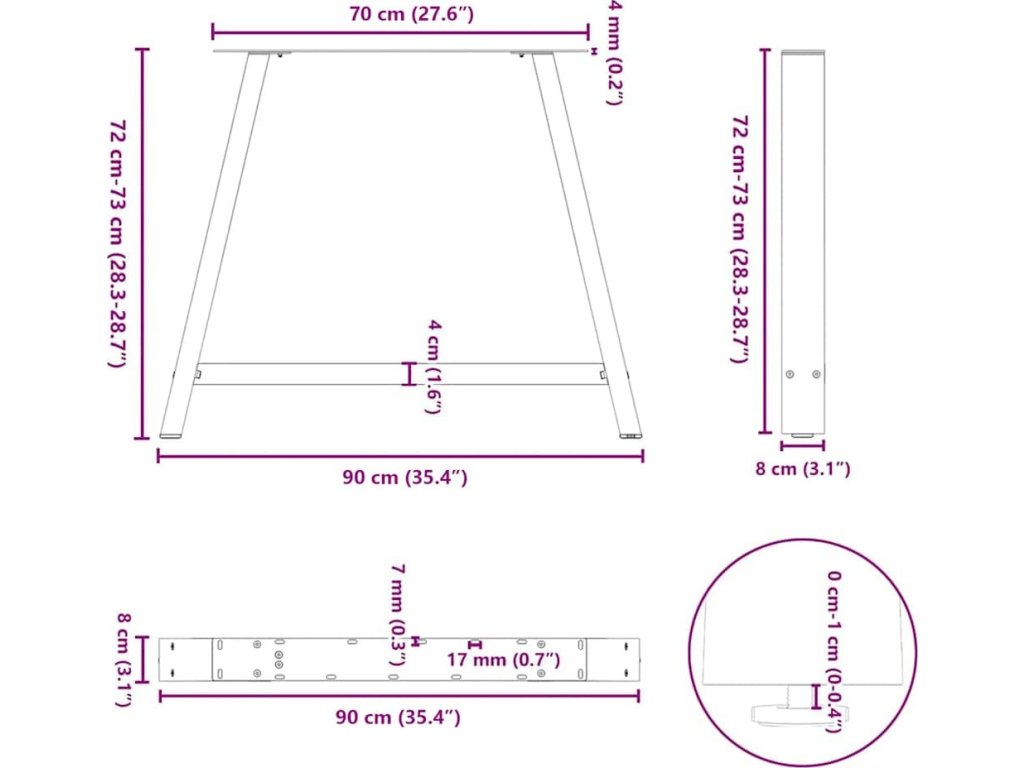Nohy k jídelnímu stolu ve tvaru A, 2 ks, , 90 x (72-73) cm, ocel [4012860]