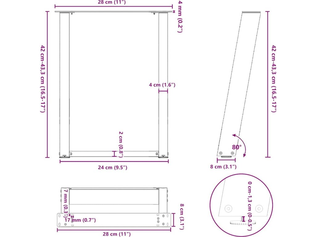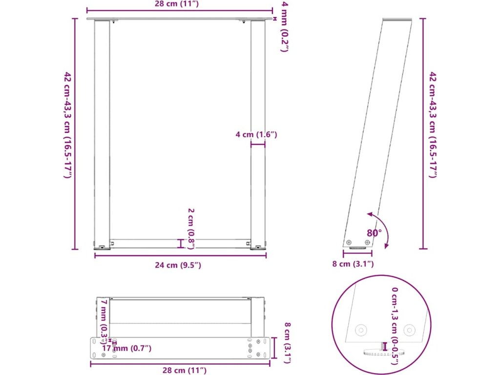 Nohy konferenčního stolku ve tvaru U, 2 ks, ocel, 28 x (42-43) cm, ocel [4012758]