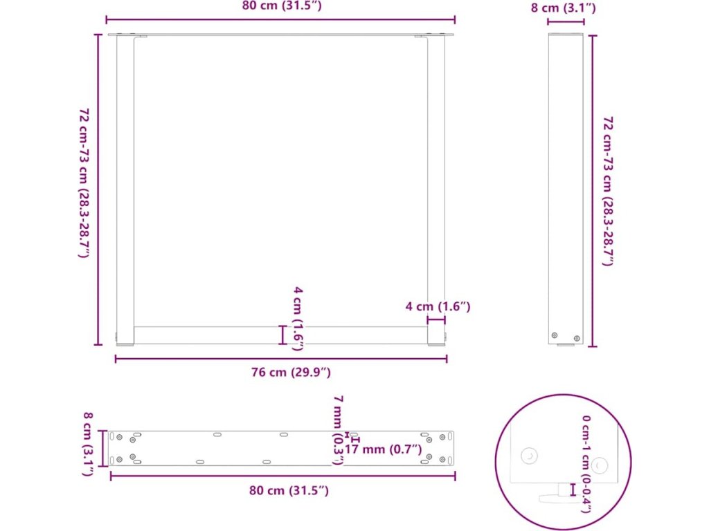 Nohy k jídelnímu stolu ve tvaru U, 3 ks, ocel, 80 x (72-73) cm, ocel [4013204]