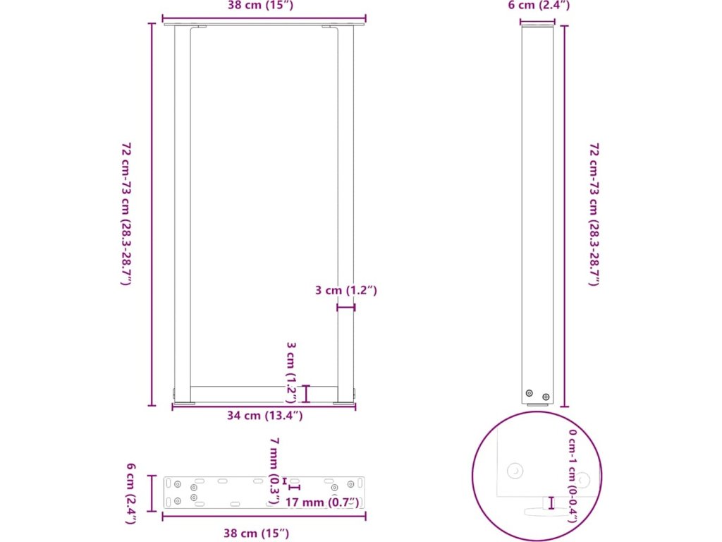 - Praktický design: Tato noha konzolového stolu je vybavena nastavitelnými podpěrami, které zajišťují stabilitu i na nerovných podlahách a minimalizují poškrábání podlahy. Konzola má navíc předvrtané otvory a dodávané šrouby, které lze použít k upevnění nohy k desce stolu (nejsou součástí dodávky), což usnadňuje montáž.