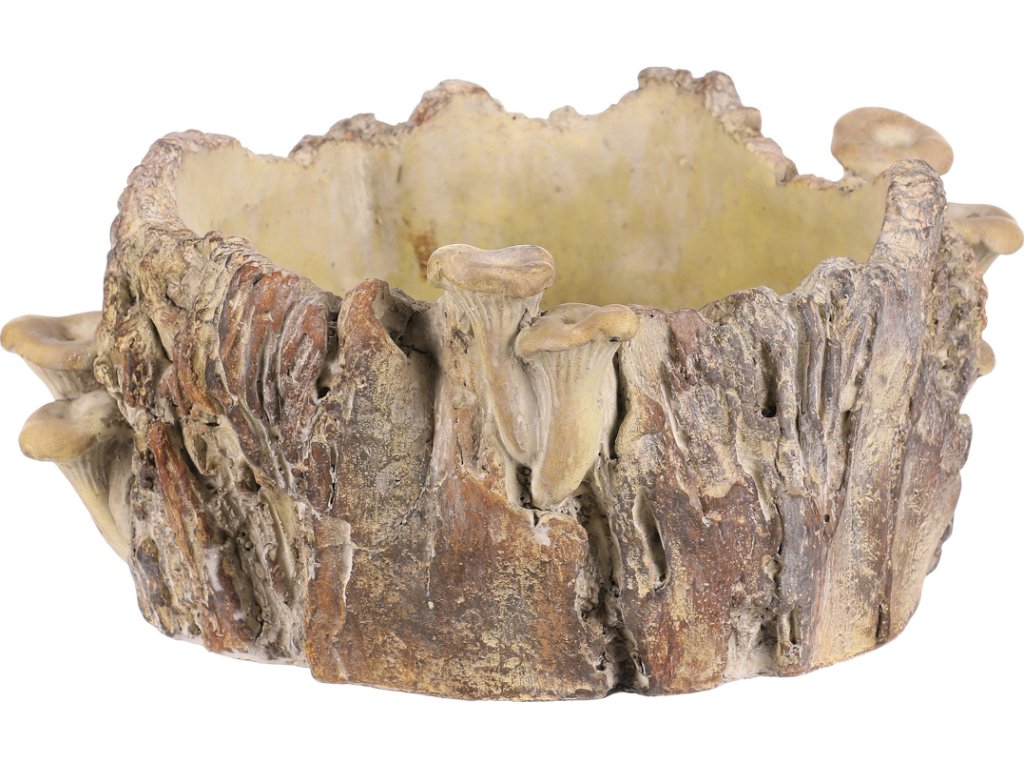 Pro všechny milovníky přírody tu máme unikátní obal na květiny z betonu, který napodobuje pařez porostlý houbami. Bude úžasným doplňkem pro vaši zahradu nebo terasu, přičemž se stane pevným a stabilním základem pro nejrůznější paletu rostlin.
