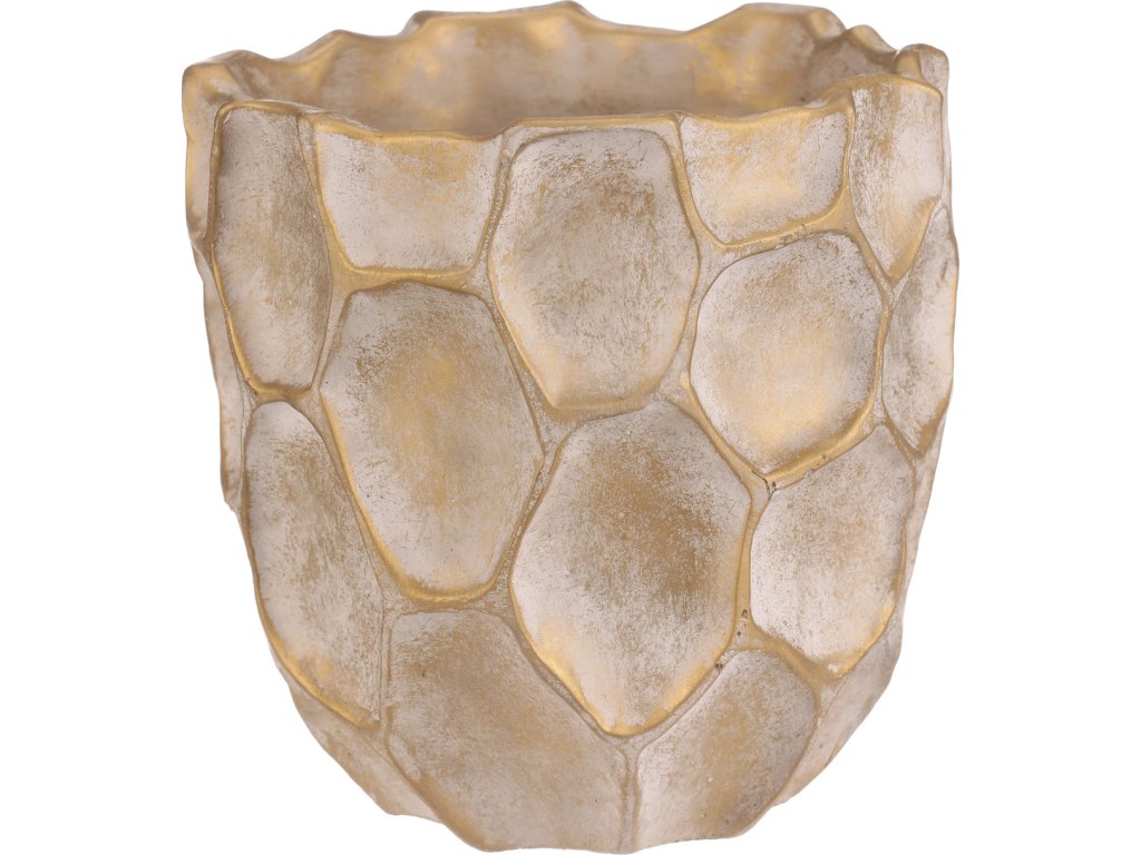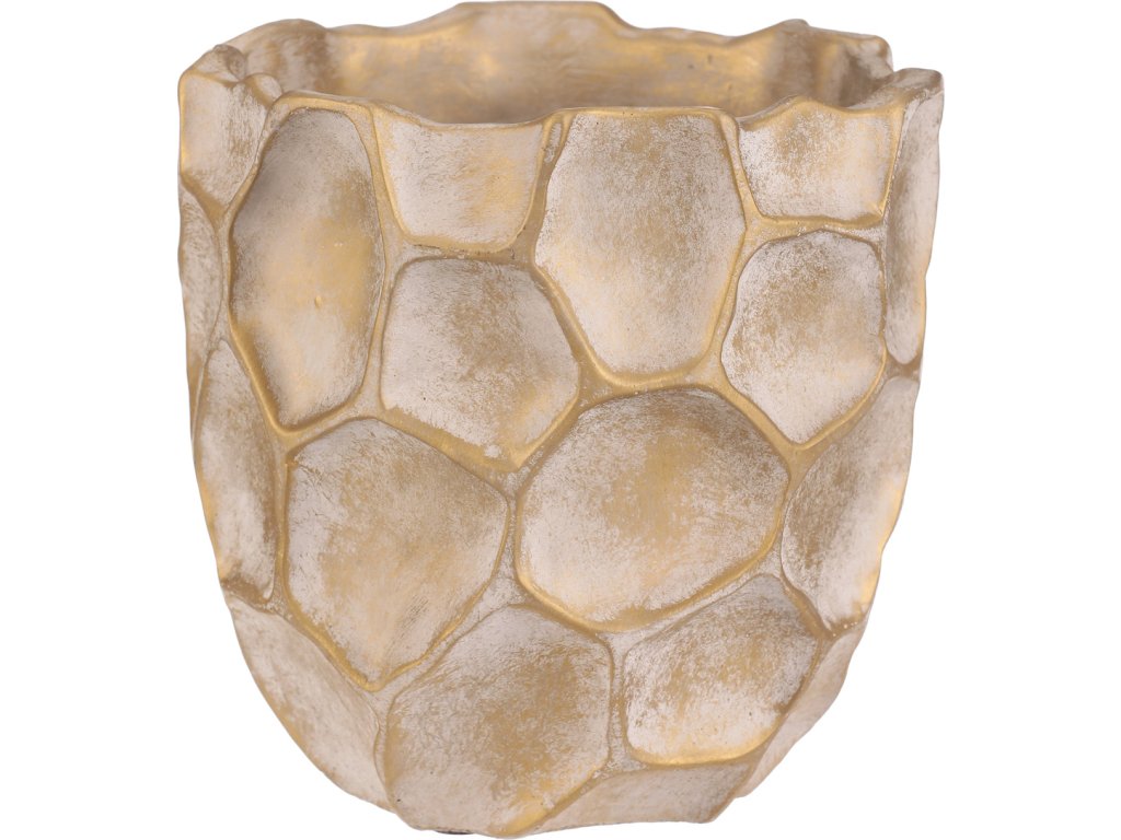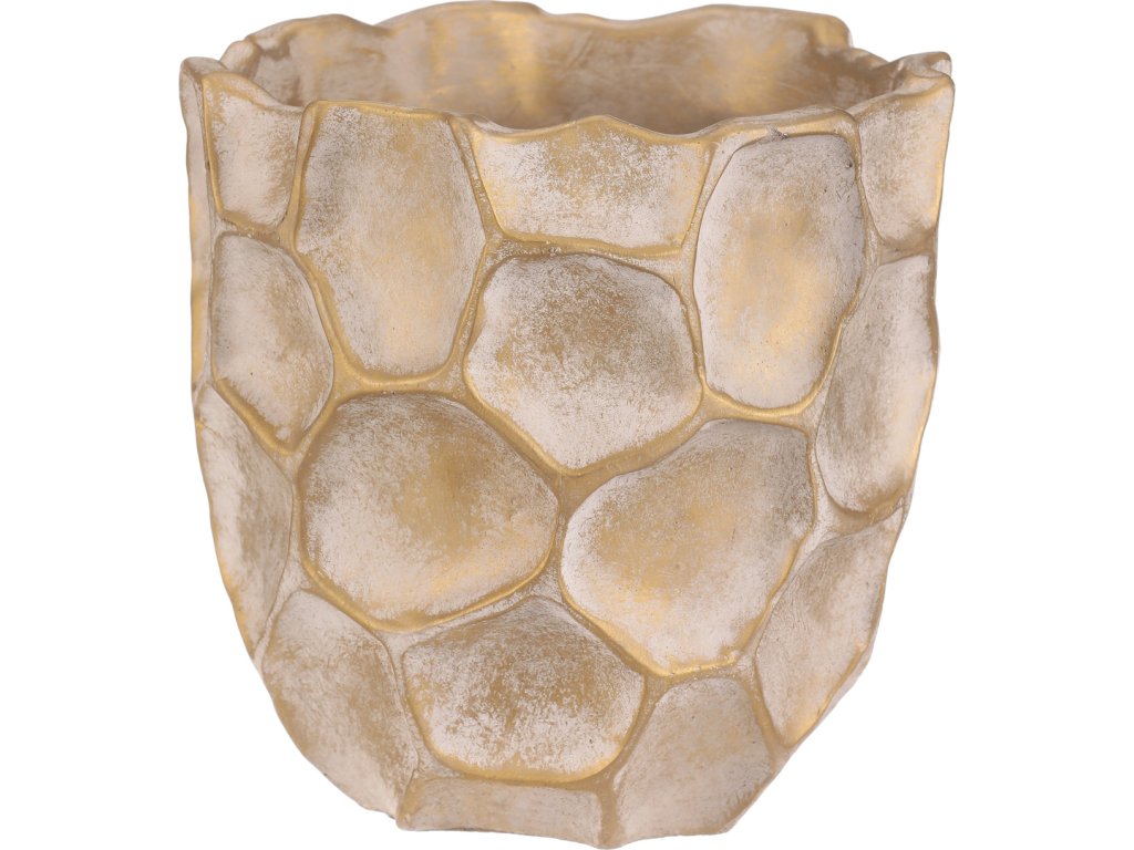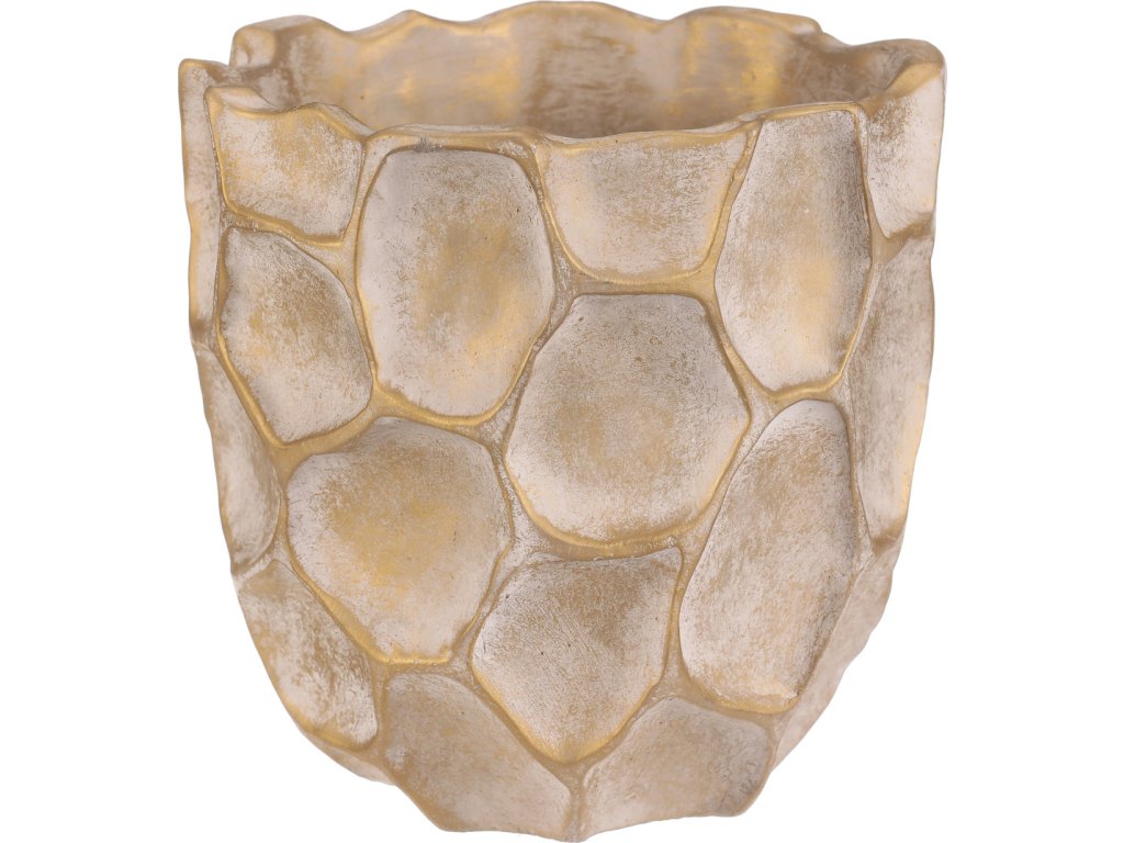 Béžovo-zlatý obal na květiny se vzorem připomínajícím plástev s nepravidelnými šestiúhelníkovými vzory, bude nádherným doplňkem zejména pro sváteční výzdobu. Je betonový, což zajišťuje jeho stabilitu, díky které bude pevným základem pro vaše oblíbené květiny, přízdoby a další dekorace.
