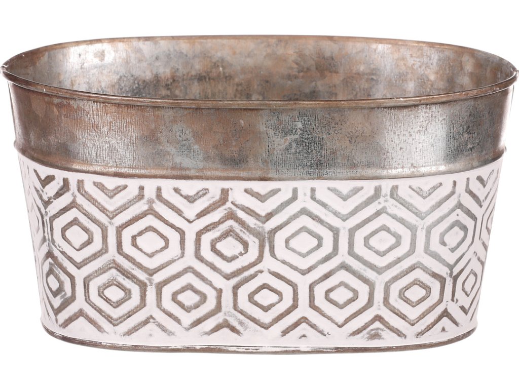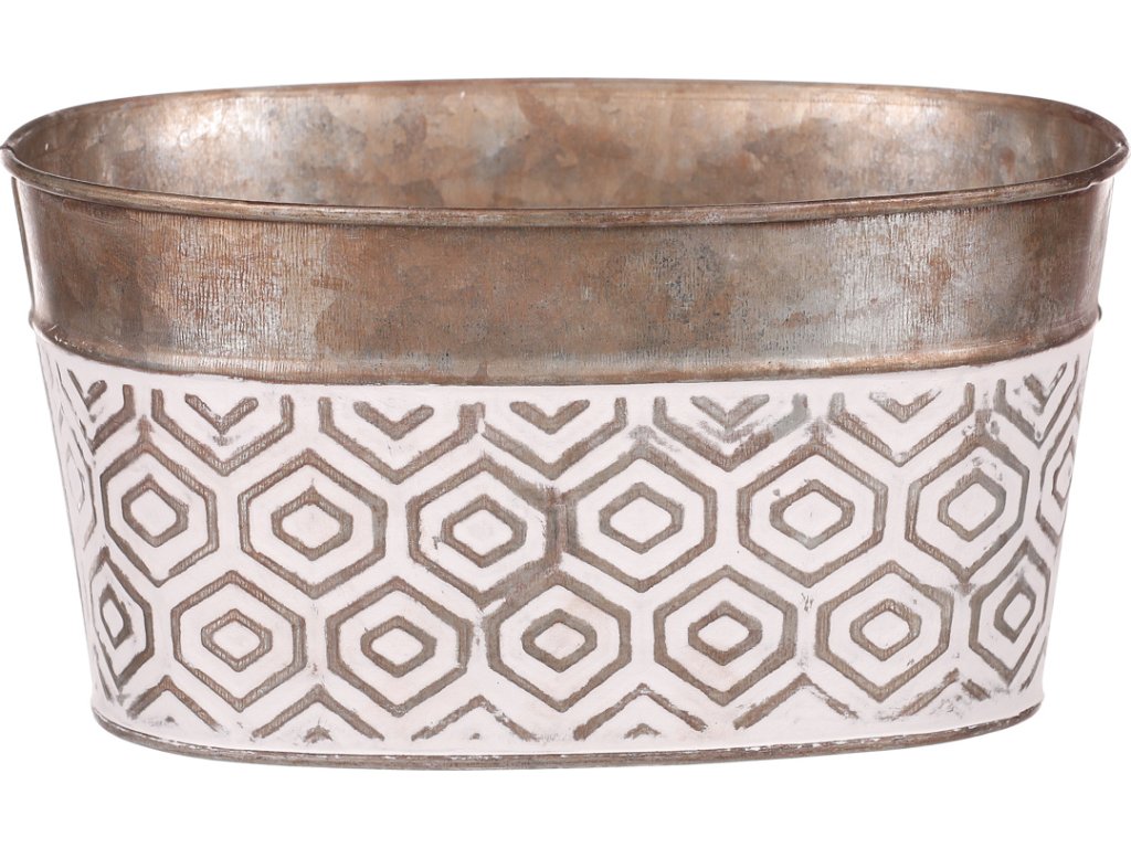 Obal kovový - oválný truhlík, s ornamenty, bílo-měděný AB2180 [2180]
